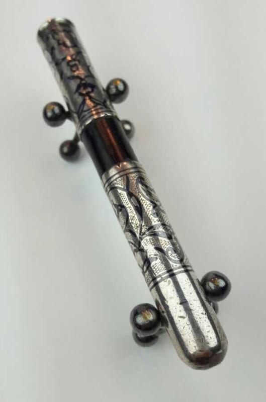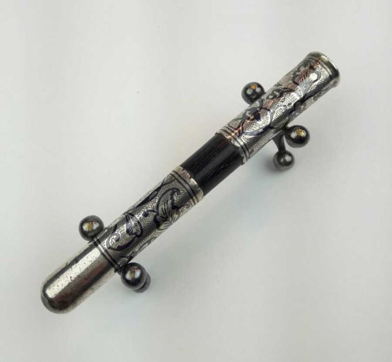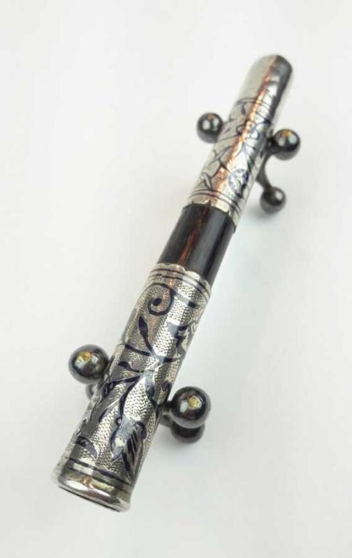 Osmanlı dönemi, abanoz ağacından bilezikli, gümüş üzeri savat işçilikli sigara ağızlığı.