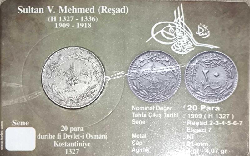 LOT.237 » Osmanlı Sultan Mehmet Reşat Nikel Para orjinaldir. Özel Tasarım Kit içinde