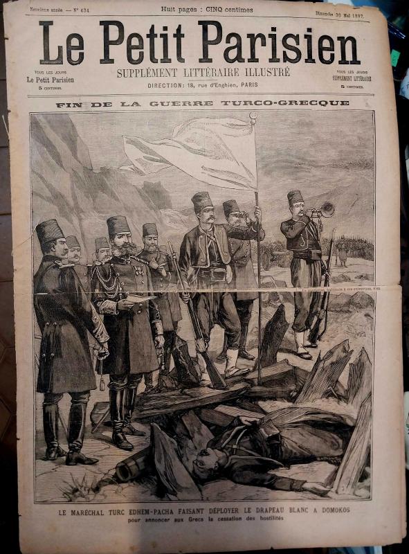 Osmanlı Yunan Savaşı 1897 Tarihli Orijinal Dönemi LE PETİT PARISSIEN Fransızca Dergi ve Savaşı Idare Eden Üst Rütbeli Komutanların O Dönem Afişi.. 30 MAYIS 1897 Tarihli dergi kapağında Edirne Hümayun-u Müşir'i Edhem Paşa ve Komutanlar. Afişte Edhem Paşa ve Diğer Komutanlar var.. Osmanlı Yunan Savaşı Madalya ve Beratı Yanında Güzel Bir Lot Olur. KOLEKSİYONLUK ÜRÜNLER..