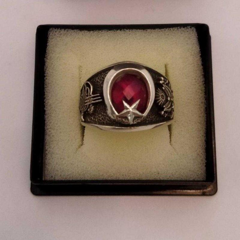 el işçiliği ile üretilmiş- 925 ayar gümüş Yüzüğün yanında Osmanlı Devlet Arması ve Osmanlı Tuğrası işlenmiş ön kısımda ay yıldız işli. muthiş bir ürün -orjinal kutusu ile beraber verilecek elmas iş imalatı