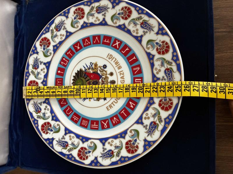Osmanlı armalı Kütahya porselen tabak başlıklı antika/koleksiyon objesi Türkiye menşe’lidir. 1950-1999 arası dönemine aittir.