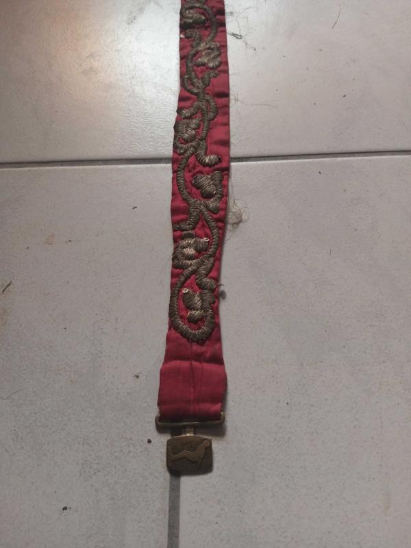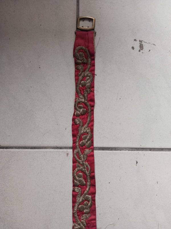 Osmanlı dönemi Gümüş işlemeli bindallı kemeri kemer tokası 19. Yüzyılın başlarında 85 cm başlıklı antika/koleksiyon objesi Osmanlı menşe’lidir. 1900-1919 arası dönemine aittir.