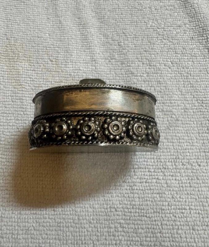 Osmanlı dönemi Telkâri gümüş Enfiye Kutusu Vintage tamamen Gümüş Mücevher Kutusu Keçe Kaplamalı Yarı Değerli Taşlar Oval Süslü, en son bir ay önce güncellenmiştir.