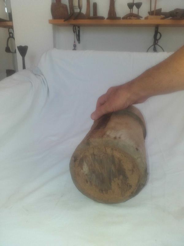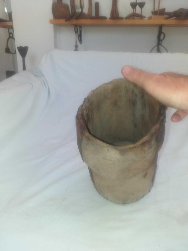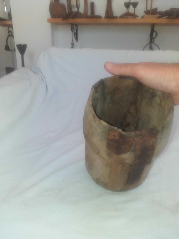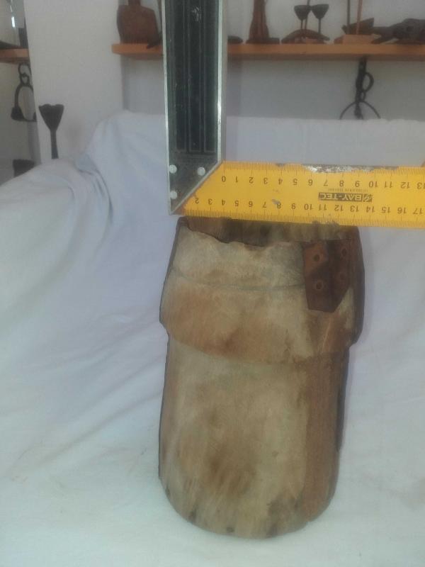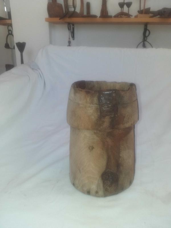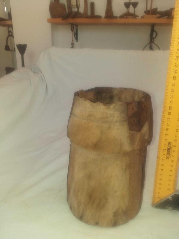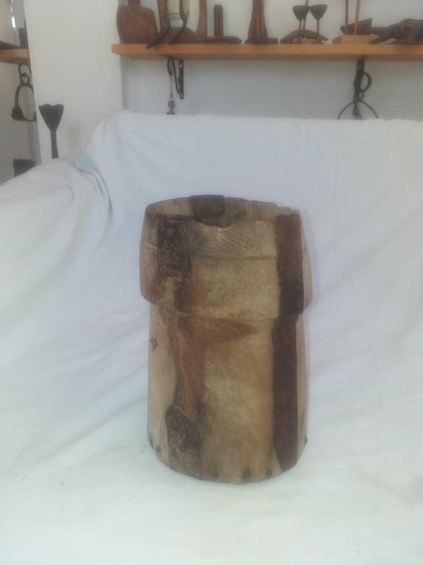 Yörük işi, muazzam patinesiyle güzel eskimiş ,ağacın içi keser benzeri aletlerle oyularak ,dibi düz bir ahşapla kapatılan nadir tahıl ölçeği... Kulpsuz fakat rahat tutmak için çepeçevre girinti oluşturulmuş... Mutfağınızda kepçe benzeri uzun mutfak gereçlerini veya ahşap kaşıklarınızı içine koyarak kullanabileceğiniz , son derece dekoratif obje... Tarım aleti , ethnografik sanat , ethnografic art , reprodüksiyon, reproduction, folk art...