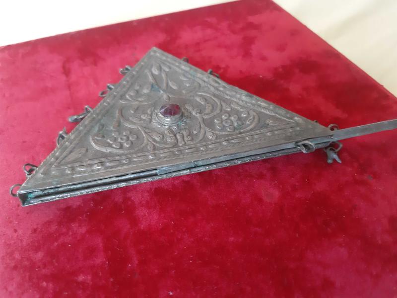 Osmanli donemi buyuk boy genelde asker uzerinde tasinan 8 cm kenar olculu acilir kapanir hamayli kolleksiyon urunudur. Alpaka gumustur.
