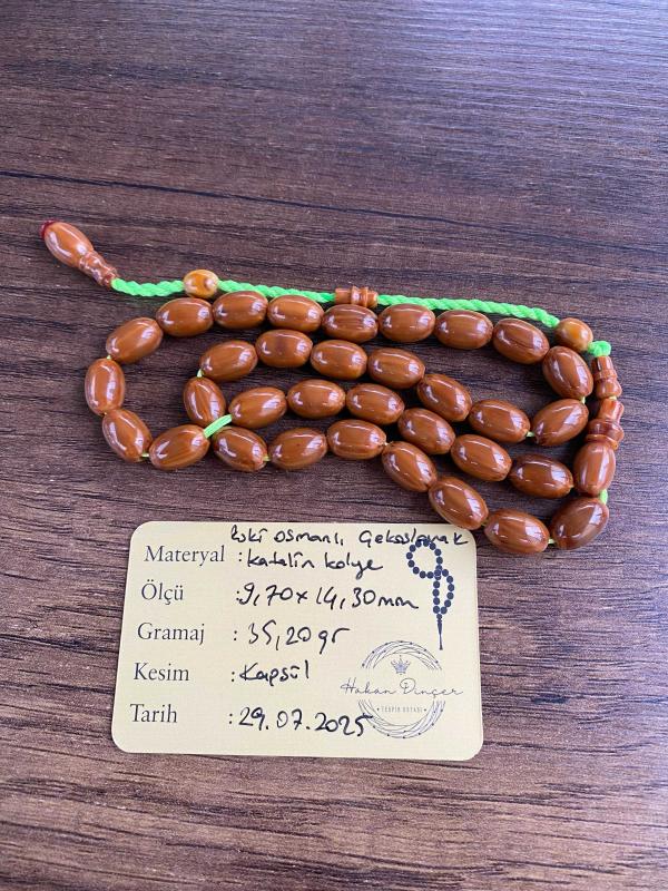 Osmanlı kolyeden Çekoslovak katalin koleksiyonluk usta sertifikalı tespih başlıklı antika/koleksiyon objesi Osmanlı menşe’lidir. 1900 öncesi dönemine aittir.