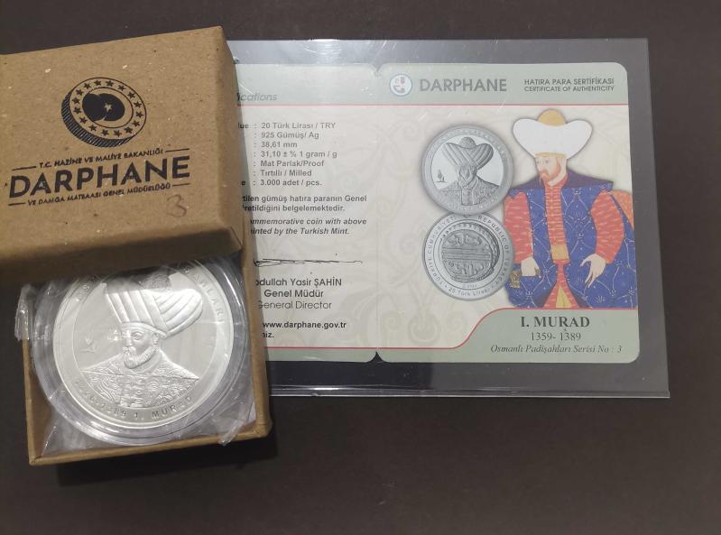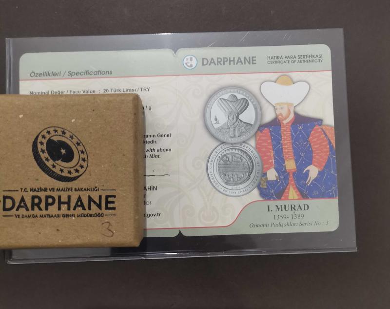 Osmanlı padişahları no:3 I. Murat darphane den geldiği gibi poşetli ve kutulu SERTİFİKASI mevcut. Uygulamanın En #uygun fiyatı