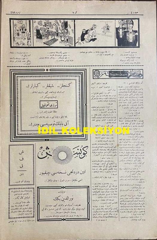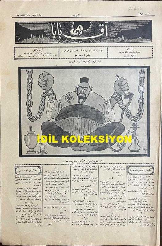 Osmanlıca Akbaba Mizah Dergisi-Gazetesi, Orijinal Dönem Basım, (Ottoman Magazine-Newspaper) - 15 Ağustos 1927 - Sayı: 488 - Karikatürist Ramiz Gökçe'nin Çalışması: İran Gazeteleri Aleyhimizde Ateş Püskürüyor... "İlle Özümü Kızdıranda Hemminizi Helak Ederim, ha!..." - "Ada Vapurunda Dedi Kodular" Akbaba - Aka Gündüz'ün Hastalığı "Geçenlerde, Cumhuriyet Refikimiz, Aka Gündüz Bey'in Şayan-ı Teessür Bir Hastalığa Tutulduğunu ve Ne zaman İfakat Bulacağının Meçhul Olduğunu Yazmıştı. Aka Gündüz Bey'in Hastalığı Yeni Mebusların İsimleri Taayyün Edinceye Kadar Sürdükten Sonra Geçecek, Fakat Gelecek İntihabatta, Maalesef Tekrar Nüks Edecektir!.." - "İki Tip" Kanber - "Çapkın Şiirler" Dalga - "Bir Hayır Sahibi" Mahmut Yesari - Akbaba'nın Tefrikası: "Meşhedi Arslan Peşinde" Muharriri: Ercüment Ekrem (Talu) - Dış Basından Karikatürler adlı eser, Kitap > Süreli Yayınlar > Gazeteler > Türkiye > Genel kategorisinde İkinci El olarak satıştadır.