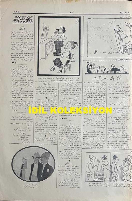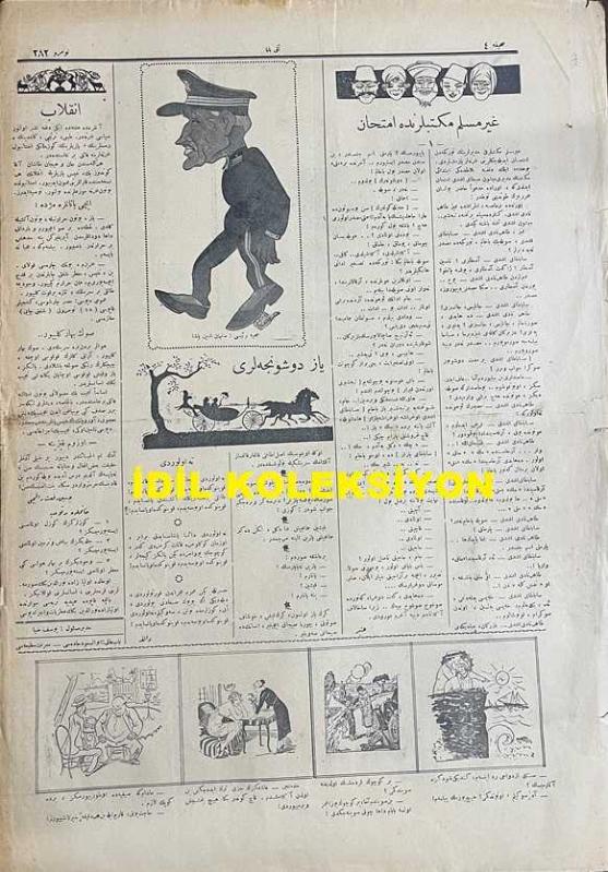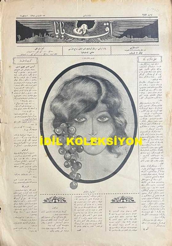 Osmanlıca Akbaba Mizah Dergisi-Gazetesi, Orijinal Dönem Basım, (Ottoman Magazine-Newspaper) - 17 Ağustos 1925 - Rumi: 17 Ağustos 1341 - Sayı: 282 - Karikatürist Ramiz Gökçe'nin Çalışması: Mevsim Yemişlerinden "İstanbul Yapıncağı" - "Lütfi Fikri Bey'e: Akbaba - Mülakat: "Meşhedi Bahçıvan" Çekirge (Ercüment Ekrem Talu) - "Kudüs Darülfünunu'nda Sabetay Kohen Efendi'nin Kimya Dersi" Karga - Karikatürist Ramiz Gökçe'nin Çalışması:Bugünkü Tevfik Fikret İhtifalinden Maruf Tıraşçı ile Kerime-i Aliyeleri "Tevfik Fikret'in Ruhu: Aman, Usturayı Fena Biliyor, Taşı Yarıp Bana Kadar Gelecek, Kaçmalı!..." - "Evvela Can.. Sonra?.." Selami İzzet (Sedes) - "İstanbul'da Yaz" Bu Yakıcı Güneşin Altında Gezip, Yorul, Sanki, Yaz Mevsiminde Cehennemdir İstanbul! (...) Kartal - "Gayr-i Müslim Mekteplerinde İmtihan" Anber - Karikatürist Hüsamettin Haşim'in Çalışması: Sıhhiye Reisi: Süleyman Emin Paşa adlı eser, Kitap > Süreli Yayınlar > Gazeteler > Türkiye > Genel kategorisinde İkinci El olarak satıştadır.