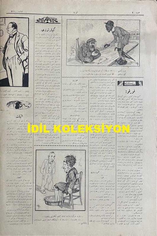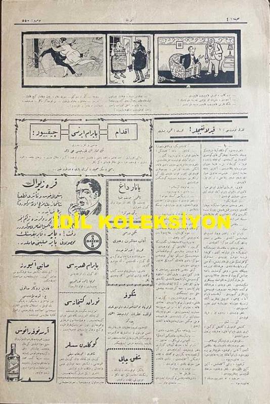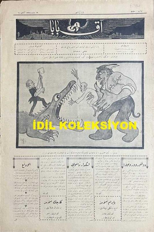 Osmanlıca Akbaba Mizah Dergisi-Gazetesi, Orijinal Dönem Basım, (Ottoman Magazine-Newspaper) - 19 Mart 1928 - Sayı: 550 - Karikatürist Ramiz Gökçe'nin Veremle Savaşa Dair Çalışması: Gazetelerden: Her Gün Aramızdan Birçok Canlar Alıp Götüren Vereme Karşı Bir Mücadele Cemiyeti Teşekkül Etti... " Veremli: Aman Hemşehri, O Canavarı Öldürmeye Uğraşacağına, Beni Bu İnsafsızın Pençesinden Kurtar!..." - Doktor Voronoff'a ! "Eğer, Bir Maymun Aşısıyla, Bu Bilgili İhtiyarlara Gençlerin Kudretini de Verirsen, Nikah Memuru Hazretlerinin Elini Öpüp Hayır Duasını Alabilmek İçin Dedelerimizden Bize Sıra Gelemeyecektir! Tecrübesiz, Bilgisiz, Toy Delikanlılara Acı Doktor!.." - Hikaye: "Korku" Mahmut Yesari - "Muamma" Selami İzzet (Sedes) - Tefrika: "Kırlangıçlar" Muharriri: Mahmut Yesari - Dış Basından Karikatürler adlı eser, Kitap > Süreli Yayınlar > Gazeteler > Türkiye > Genel kategorisinde İkinci El olarak satıştadır.