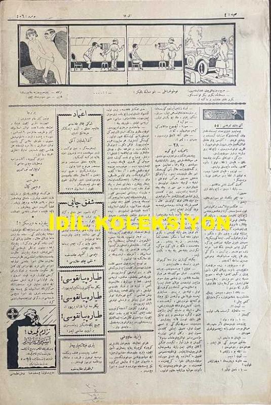 Osmanlıca Akbaba Mizah Dergisi-Gazetesi, Orijinal Dönem Basım, (Ottoman Magazine-Newspaper) - 25 Ekim (Teşrin-i Evvel) 1926 - Sayı: 406 - Karikatürist Ramiz Gökçe'nin Benito Mussolini'yi Tasvir Eden Çalışması: Gazetelerden: Mussolini Bu Sefer de Fransızlardan Suriye'yi İstiyormuş! "Akrep Yerinde Durmuyor, Galiba Ayarı Bozuldu!" - Kıssadan Hisse "Medeni Hayata Girdik. Kılığımız, Kıyafetimiz Avrupalılaştı. Frak, Silindir Giyiyoruz. Fokstrot, Tango, Çarliston Oynuyoruz. Fakat, Pek Azımız Müstesna, Bu Hayatın Henüz Yabancısı da Değil de Adeta Yabanisi Gibi Duruyoruz" - "Emin Bey'in Şarkısı" Çimdik - "Hanımefendi" Dalga - "Bir Muahede" Ercüment Ekrem (Talu) - Karikatürist Ramiz Gökçe'nin Galata Köprüsü'nü Tasvir Eden Çalışması: İstanbul'da İlan İnhisarını Şehremaneti Alacak ve Köprünün Tarafeynine İlanlar Asılacakmış! " Şahtı şahbaz Olacak!" - Musa süreyya Bey'le Mülakat - "İskonto" Kumru - Akbaba'nın Tefrikası: Meşhedi ile Devr-i Alem - Dış basından Karikatürler, Yusuf Ziya (ORTAÇ) tarafından kaleme alınmıştır. Kitap 1926 yılında [İstanbul] yayınlanmıştır. Satışta olan kitap, yayınevinin 406. baskısıdır. 4 sayfadır. Osmanlıca Akbaba Mizah Dergisi-Gazetesi, Orijinal Dönem Basım, (Ottoman Magazine-Newspaper) - 25 Ekim (Teşrin-i Evvel) 1926 - Sayı: 406 - Karikatürist Ramiz Gökçe'nin Benito Mussolini'yi Tasvir Eden Çalışması: Gazetelerden: Mussolini Bu Sefer de Fransızlardan Suriye'yi İstiyormuş! "Akrep Yerinde Durmuyor, Galiba Ayarı Bozuldu!" - Kıssadan Hisse "Medeni Hayata Girdik. Kılığımız, Kıyafetimiz Avrupalılaştı. Frak, Silindir Giyiyoruz. Fokstrot, Tango, Çarliston Oynuyoruz. Fakat, Pek Azımız Müstesna, Bu Hayatın Henüz Yabancısı da Değil de Adeta Yabanisi Gibi Duruyoruz" - "Emin Bey'in Şarkısı" Çimdik - "Hanımefendi" Dalga - "Bir Muahede" Ercüment Ekrem (Talu) - Karikatürist Ramiz Gökçe'nin Galata Köprüsü'nü Tasvir Eden Çalışması: İstanbul'da İlan İnhisarını Şehremaneti Alacak ve Köprünün Tarafeynine İlanlar Asılacakmış! " Şahtı şahbaz Olacak!" - Musa süreyya Bey'le Mülakat - "İskonto" Kumru - Akbaba'nın Tefrikası: Meşhedi ile Devr-i Alem - Dış basından Karikatürler adlı eser Osmanlıca dilindedir.