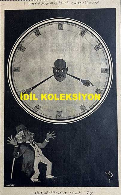 Osmanlıca Akbaba Mizah Dergisi-Gazetesi, Orijinal Dönem Basım, (Ottoman Magazine-Newspaper) - 25 Ekim (Teşrin-i Evvel) 1926 - Sayı: 406 - Karikatürist Ramiz Gökçe'nin Benito Mussolini'yi Tasvir Eden Çalışması: Gazetelerden: Mussolini Bu Sefer de Fransızlardan Suriye'yi İstiyormuş! "Akrep Yerinde Durmuyor, Galiba Ayarı Bozuldu!" - Kıssadan Hisse "Medeni Hayata Girdik. Kılığımız, Kıyafetimiz Avrupalılaştı. Frak, Silindir Giyiyoruz. Fokstrot, Tango, Çarliston Oynuyoruz. Fakat, Pek Azımız Müstesna, Bu Hayatın Henüz Yabancısı da Değil de Adeta Yabanisi Gibi Duruyoruz" - "Emin Bey'in Şarkısı" Çimdik - "Hanımefendi" Dalga - "Bir Muahede" Ercüment Ekrem (Talu) - Karikatürist Ramiz Gökçe'nin Galata Köprüsü'nü Tasvir Eden Çalışması: İstanbul'da İlan İnhisarını Şehremaneti Alacak ve Köprünün Tarafeynine İlanlar Asılacakmış! " Şahtı şahbaz Olacak!" - Musa süreyya Bey'le Mülakat - "İskonto" Kumru - Akbaba'nın Tefrikası: Meşhedi ile Devr-i Alem - Dış basından Karikatürler adlı eser, Kitap > Süreli Yayınlar > Gazeteler > Türkiye > Genel kategorisinde İkinci El olarak satıştadır.