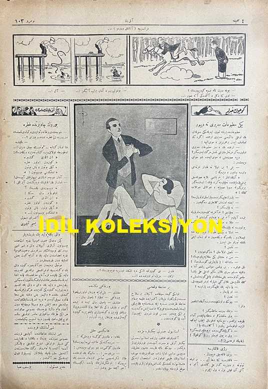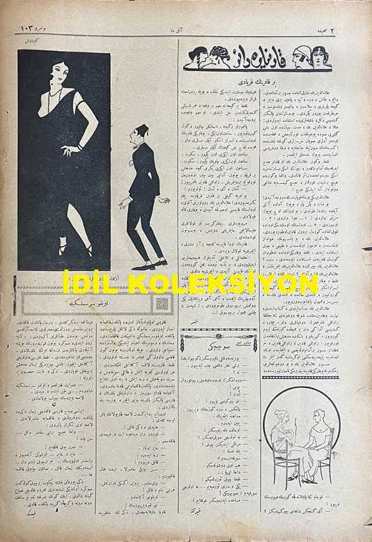 Osmanlıca Akbaba Mizah Dergisi-Gazetesi, Orijinal Dönem Basım, (Ottoman Magazine-Newspaper) - 29 Kasım 1923 - Sayı: 103 - Rumi: 29 Teşrin-i Sani 1339 - Hicri: 19 Rebiülahir 1342 - Düyun-ı Umumiye Temalı Karikatür: Osmanlı Saltanatının Türkiye Cumhuriyeti'ne Son Mirası - Laklakiyat: Ankara'ya Mektup "Rauf Bey'in Gazetelerde İntişar Eden Birkaç Satırlık Beyanatı Derhal Meseleye Başka Bir Ehemmiyet Verdi, İstanbul'a Şüpheli Nazarlar Çevrildi, Buradaki Neşriyatın Her Kelimesine Cevap Vermek, Söz Söyleyen, Yazı Yazan İnsanları Tasnif Etmek İhtiyacı Hissedildi" - Matbuat Alemi: "İhtar" (İstanbul Valisi Haydar Bey Tarafından Gazetemiz İçin Kaleme Alınmıştır) Müstensihi: Hemrah - Kadınlara Dair: "Bir Kadının Feryadı" Kanber - "Uyku Sersemliğiyle" Fiske (Orhan Seyfi Orhon) - Teracim-i Ahval-i Şuara ve Meşahir - Çarşıya Pazara Dair: "Tanıdığım Sarhoşlar" Osman Cemal (Kaygılı) - Karikatür: Darphane Müdürü - Akbaba'nın Masalları: "Yörük Çadırında Fitre" Aksaray Mebusu Besim Atalay, Orhan Seyfi (ORHON) tarafından kaleme alınmıştır. Kitap 1923 [Hicri: 1342] [Rûmi: 1339] yılında [İstanbul] yayınlanmıştır. Satışta olan kitap, yayınevinin 103. baskısıdır. 4 sayfadır. Osmanlıca Akbaba Mizah Dergisi-Gazetesi, Orijinal Dönem Basım, (Ottoman Magazine-Newspaper) - 29 Kasım 1923 - Sayı: 103 - Rumi: 29 Teşrin-i Sani 1339 - Hicri: 19 Rebiülahir 1342 - Düyun-ı Umumiye Temalı Karikatür: Osmanlı Saltanatının Türkiye Cumhuriyeti'ne Son Mirası - Laklakiyat: Ankara'ya Mektup "Rauf Bey'in Gazetelerde İntişar Eden Birkaç Satırlık Beyanatı Derhal Meseleye Başka Bir Ehemmiyet Verdi, İstanbul'a Şüpheli Nazarlar Çevrildi, Buradaki Neşriyatın Her Kelimesine Cevap Vermek, Söz Söyleyen, Yazı Yazan İnsanları Tasnif Etmek İhtiyacı Hissedildi" - Matbuat Alemi: "İhtar" (İstanbul Valisi Haydar Bey Tarafından Gazetemiz İçin Kaleme Alınmıştır) Müstensihi: Hemrah - Kadınlara Dair: "Bir Kadının Feryadı" Kanber - "Uyku Sersemliğiyle" Fiske (Orhan Seyfi Orhon) - Teracim-i Ahval-i Şuara ve Meşahir - Çarşıya Pazara Dair: "Tanıdığım Sarhoşlar" Osman Cemal (Kaygılı) - Karikatür: Darphane Müdürü - Akbaba'nın Masalları: "Yörük Çadırında Fitre" Aksaray Mebusu Besim Atalay adlı eser Osmanlıca dilindedir.