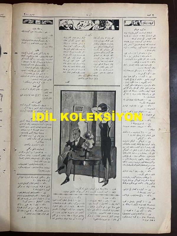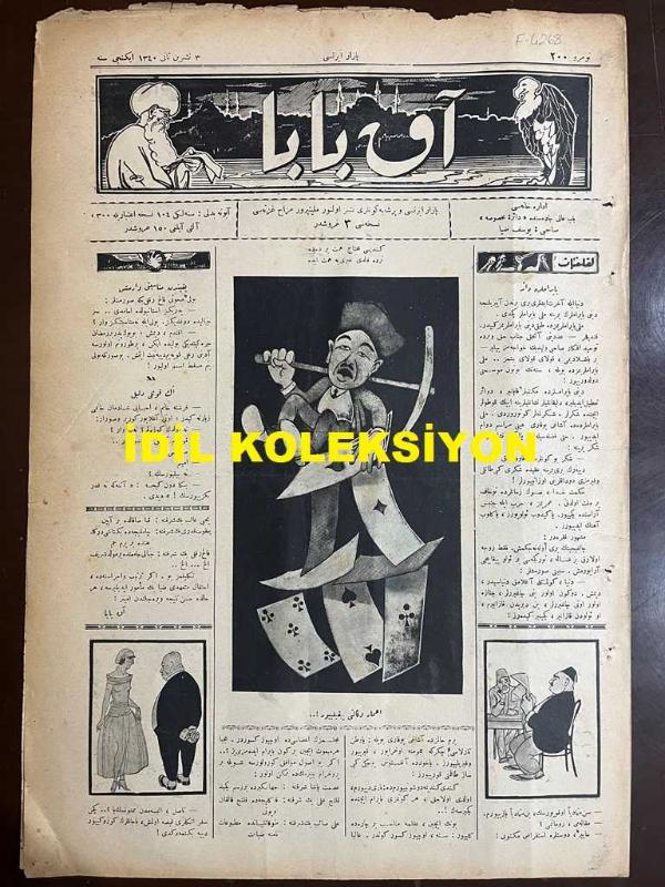 Osmanlıca Akbaba Mizah Dergisi-Gazetesi, Orijinal Dönem Basım, (Ottoman Magazine-Newspaper) - 3 Kasım 1924 - Sayı: 200 - Rumi: 3 Teşrin-i Sani 1340 - Karikatürist Ramiz Gökçe'nin Çalışması: "Kendisi Muhtac-ı Himmet Bir Dede, Nerde Kaldı Gayrıya Himmet Ede" "İmar Vekaleti Yıkılıyor!." - Laklakiyat: Bayramlara Dair "Dünya İle Ahiret İşleri Biri Birinden Ayrılınca Dini Bayramların Yerine Milli Bayramlar Geçti. Kandiller, Adedini Ancak Cenab-ı Hak ve Bir de Tevhid-i Efkar Sahibi Velid (Ebüzziya) Bey Hocamız Bilir.. Milli Bayramlarımız da böyle, Senenin Bütün Mevsimini Dolduruyor! Acaba Her Mebus İçin Bir Gün Bayram Edemez miyiz?.. Kılıç Ali Bey Şerefine: Kılıç Kalkan Oyunu, Yakup Kadri Bey Şerefine: Çamlıca'da Bektaşi Dergahında Bir Cem, Falih Rıfkı Bey Şerefine: Cibali Camii'nde Bir Mevlid-i Şerif ilh." - Küçük Hikaye: Düğün Sabahı - Tarz-ı Kadim: Terkib-i Bend - Ratip Tahir Burak'ın Karikatürü - Kadınlara Dair: On üç Davetli - Ecnebi Karikatürleri