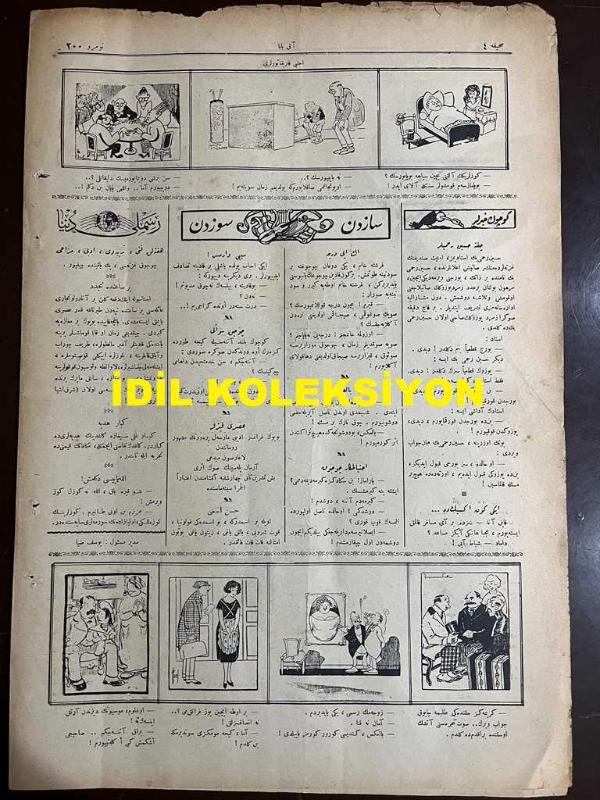 Osmanlıca Akbaba Mizah Dergisi-Gazetesi, Orijinal Dönem Basım, (Ottoman Magazine-Newspaper) - 3 Kasım 1924 - Sayı: 200 - Rumi: 3 Teşrin-i Sani 1340 - Karikatürist Ramiz Gökçe'nin Çalışması: "Kendisi Muhtac-ı Himmet Bir Dede, Nerde Kaldı Gayrıya Himmet Ede" "İmar Vekaleti Yıkılıyor!." - Laklakiyat: Bayramlara Dair "Dünya İle Ahiret İşleri Biri Birinden Ayrılınca Dini Bayramların Yerine Milli Bayramlar Geçti. Kandiller, Adedini Ancak Cenab-ı Hak ve Bir de Tevhid-i Efkar Sahibi Velid (Ebüzziya) Bey Hocamız Bilir.. Milli Bayramlarımız da böyle, Senenin Bütün Mevsimini Dolduruyor! Acaba Her Mebus İçin Bir Gün Bayram Edemez miyiz?.. Kılıç Ali Bey Şerefine: Kılıç Kalkan Oyunu, Yakup Kadri Bey Şerefine: Çamlıca'da Bektaşi Dergahında Bir Cem, Falih Rıfkı Bey Şerefine: Cibali Camii'nde Bir Mevlid-i Şerif ilh." - Küçük Hikaye: Düğün Sabahı - Tarz-ı Kadim: Terkib-i Bend - Ratip Tahir Burak'ın Karikatürü - Kadınlara Dair: On üç Davetli - Ecnebi Karikatürleri adlı eser, Kitap > Süreli Yayınlar > Gazeteler > Türkiye > Genel kategorisinde İkinci El olarak satıştadır.