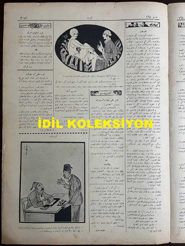 Osmanlıca Akbaba Mizah Dergisi-Gazetesi, Orijinal Dönem Basım, (Ottoman Magazine-Newspaper) - 30 Haziran 1924 - Sayı: 164 - Rumi: 30 Haziran 1340 - Hicri: 29 Zilkade 1342 - Karikatürist Ramiz Gökçe'nin Çalışması: Üç Aylık Eytam ve Eramil Maaşı "Ağlayanlara Emzik!.." - Laklakiyat: Kıyamet Alametleri "Şu Zekeriya Bey Nereden Gitti Amerika'ya!.. İşte Dünkü Cumhuriyet'te Baklayı Ağzından Çıkardı: Kuyruklu Yıldız Efsanesini Amerika Gazetelerinden Almış!.." - Kuyruklu Yıldızlara Dair - Fıkralar: Kıyamet Fıkraları - Cemal Nadir Güler'in Karikatürleri - Küçük Hikaye: "Tuluat" Selami İzzet (Sedes) - Şundan Bundan: Falih Rıfkı (Atay) Bey'in Fransızcası - Kürt Hakkı İle Mülakat: Kara Listeye Dahil Olan Kürt Hakkı İle Polis Müdüriyetinde Yapılan Görüşme - Matbuat Alemi: Bir Mektuptan Bir Parça "Yakup Kadri (Karaosmanoğlu) Bey'in, Ankara'da Bulunan Cumhuriyet Gazetesi Baş Muharriri Yunus Nadi Bey'e Gönderdiği Bir Mektuptan Alınmıştır - Küçük Hikaye: Polislerin Cesareti, Orhan Seyfi (ORHON) tarafından kaleme alınmıştır. Kitap 1924 [Hicri: 1342] [Rûmi: 1340] yılında [İstanbul] yayınlanmıştır. Satışta olan kitap, yayınevinin 164. baskısıdır. 4 sayfadır. Osmanlıca Akbaba Mizah Dergisi-Gazetesi, Orijinal Dönem Basım, (Ottoman Magazine-Newspaper) - 30 Haziran 1924 - Sayı: 164 - Rumi: 30 Haziran 1340 - Hicri: 29 Zilkade 1342 - Karikatürist Ramiz Gökçe'nin Çalışması: Üç Aylık Eytam ve Eramil Maaşı "Ağlayanlara Emzik!.." - Laklakiyat: Kıyamet Alametleri "Şu Zekeriya Bey Nereden Gitti Amerika'ya!.. İşte Dünkü Cumhuriyet'te Baklayı Ağzından Çıkardı: Kuyruklu Yıldız Efsanesini Amerika Gazetelerinden Almış!.." - Kuyruklu Yıldızlara Dair - Fıkralar: Kıyamet Fıkraları - Cemal Nadir Güler'in Karikatürleri - Küçük Hikaye: "Tuluat" Selami İzzet (Sedes) - Şundan Bundan: Falih Rıfkı (Atay) Bey'in Fransızcası - Kürt Hakkı İle Mülakat: Kara Listeye Dahil Olan Kürt Hakkı İle Polis Müdüriyetinde Yapılan Görüşme - Matbuat Alemi: Bir Mektuptan Bir Parça "Yakup Kadri (Karaosmanoğlu) Bey'in, Ankara'da Bulunan Cumhuriyet Gazetesi Baş Muharriri Yunus Nadi Bey'e Gönderdiği Bir Mektuptan Alınmıştır - Küçük Hikaye: Polislerin Cesareti adlı eser Osmanlıca dilindedir.
