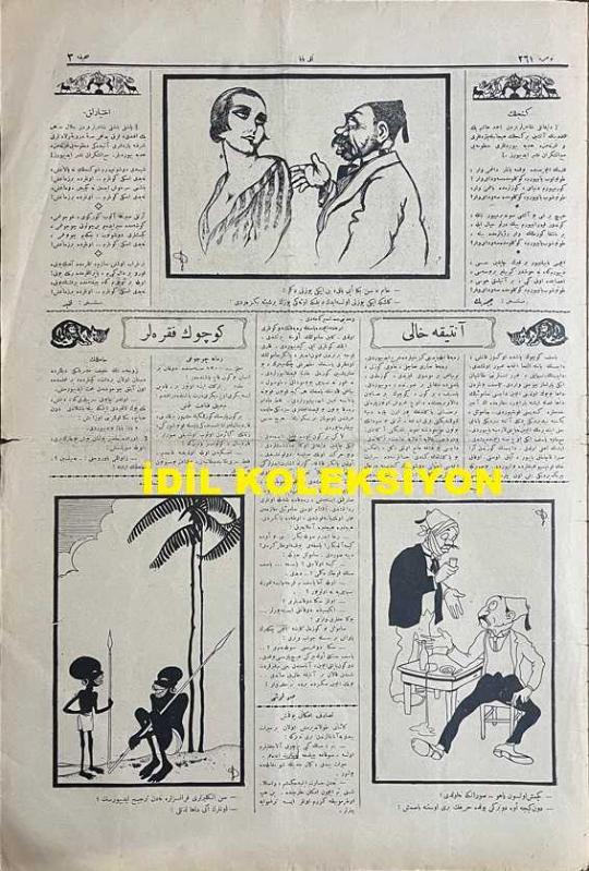 Osmanlıca Akbaba Mizah Dergisi-Gazetesi, Orijinal Dönem Basım, (Ottoman Magazine-Newspaper) - 4 Haziran 1925 - Rumi: 4 Haziran 1341 - Sayı: 261 - Kıta Avrupası'nı Tasvir Eden İmzasız Karikatür: Bütün Milletlerin Halledeceği Bilmece - Akisler: Havalara Dair "Cuma Günü, Azgın Bir Bolşevik Ordusu Gibi, Top Gürültüleri ve Kılıç Parıltılarıyla Gökyüzünü İstila Eden Bulutlar, Bir Haftadan Beri, Hala Bu Mavi Beldeyi Tahliye Etmediler. Adeta Güneşe Hasrat Kaldık. Demin Takvime Baktım: Haziran Üç!.. Halbuki, Kendimi Teşrin-i Evvelde Sanıyorum" Akbaba - "Bir Bahşiş Hikayesi" - "Der Vasf-ı Asıme-i Ankara" Kalender - Karikatür: Gazetelerden: Terakkiperver Cumhuriyet Fırkası'nın Şubeleri Birer Birer İnfisah Ediyor! - "Ah, İstesen!.." Ercüment Ekrem (Talu) - "Antika Halı" Su Kuşu - Dış Basından Karikatürler, Yusuf Ziya (ORTAÇ) tarafından kaleme alınmıştır. Kitap 1925 yılında [İstanbul] yayınlanmıştır. Satışta olan kitap, yayınevinin 261. baskısıdır. 4 sayfadır. Osmanlıca Akbaba Mizah Dergisi-Gazetesi, Orijinal Dönem Basım, (Ottoman Magazine-Newspaper) - 4 Haziran 1925 - Rumi: 4 Haziran 1341 - Sayı: 261 - Kıta Avrupası'nı Tasvir Eden İmzasız Karikatür: Bütün Milletlerin Halledeceği Bilmece - Akisler: Havalara Dair "Cuma Günü, Azgın Bir Bolşevik Ordusu Gibi, Top Gürültüleri ve Kılıç Parıltılarıyla Gökyüzünü İstila Eden Bulutlar, Bir Haftadan Beri, Hala Bu Mavi Beldeyi Tahliye Etmediler. Adeta Güneşe Hasrat Kaldık. Demin Takvime Baktım: Haziran Üç!.. Halbuki, Kendimi Teşrin-i Evvelde Sanıyorum" Akbaba - "Bir Bahşiş Hikayesi" - "Der Vasf-ı Asıme-i Ankara" Kalender - Karikatür: Gazetelerden: Terakkiperver Cumhuriyet Fırkası'nın Şubeleri Birer Birer İnfisah Ediyor! - "Ah, İstesen!.." Ercüment Ekrem (Talu) - "Antika Halı" Su Kuşu - Dış Basından Karikatürler adlı eser Osmanlıca dilindedir.