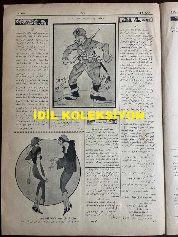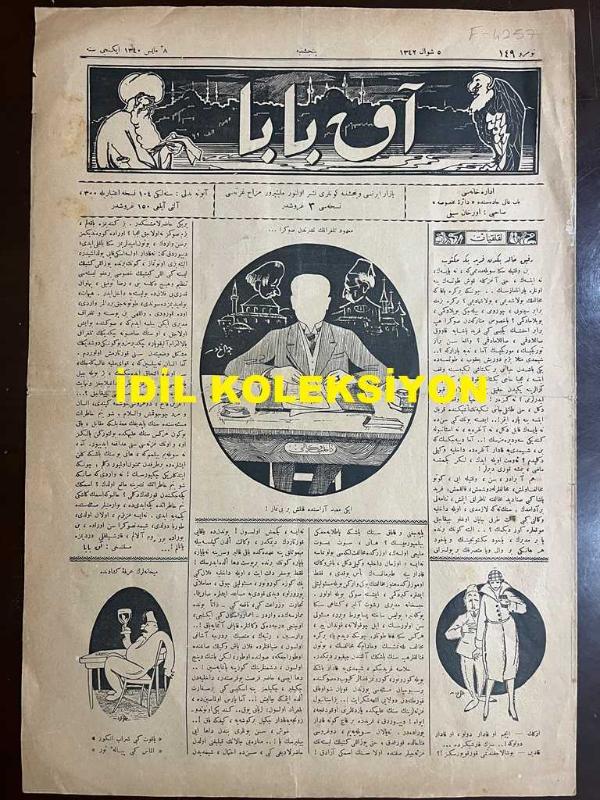 Osmanlıca Akbaba Mizah Dergisi-Gazetesi, Orijinal Dönem Basım, (Ottoman Magazine-Newspaper) - 8 Mayıs 1924 - Sayı: 149 - Rumi: 8 Mayıs 1340 - Hicri: 5 Şevval 1342 - Karikatürist Cemal Nadir Güler'in Dahiliye Vekili Ahmet Ferit Tek Temalı Çalışması: Ma'hud Telgrafın Neşrinden Sonra "İki Mabet Arasında Kalmış Bir Bi-namaz!" (Ermeniler Meselesi) - Laklakiyat: Refik Halit (Karay) Bey'den Ferit Bey'e (Ahmet Ferit Tek) Mektup "Sen de Ne Yapsan Kabil Değil, Ne Ankara'ya Ne İstanbul'a Kendini Sevdiremezsin!.. Ama Diyeceksin ki Ben, Şimdiye Kadar Ankara'da Dahiliye Vekili Değil Miydim? Evet Öyle İdin, Lakin Geçmişe Mazi, Yenmişe Kuzu Derler!" - Kısa Hikaye: Saat Gibi... - Sazdan Sözden: Hoca Efendi İle Hasbihal (Manzum) Osman Cemal (Kaygılı) - İmzasız Karikatür: Gazetelerden: Cenup Hududumuzda Müsademeler Şiddetleniyor!.."Genç Türkiye Sulh İçinde!.." - Tarz-ı Kadim: "Gazel" Abdülbaki Fevzi (Uluboy) - Amerikalılar Gülle Atıyor, Biz Leblebi!.., Orhan Seyfi (ORHON) tarafından kaleme alınmıştır. Kitap 1924 [Hicri: 1342] [Rûmi: 1340] yılında [İstanbul] yayınlanmıştır. Satışta olan kitap, yayınevinin 149. baskısıdır. 4 sayfadır. Osmanlıca Akbaba Mizah Dergisi-Gazetesi, Orijinal Dönem Basım, (Ottoman Magazine-Newspaper) - 8 Mayıs 1924 - Sayı: 149 - Rumi: 8 Mayıs 1340 - Hicri: 5 Şevval 1342 - Karikatürist Cemal Nadir Güler'in Dahiliye Vekili Ahmet Ferit Tek Temalı Çalışması: Ma'hud Telgrafın Neşrinden Sonra "İki Mabet Arasında Kalmış Bir Bi-namaz!" (Ermeniler Meselesi) - Laklakiyat: Refik Halit (Karay) Bey'den Ferit Bey'e (Ahmet Ferit Tek) Mektup "Sen de Ne Yapsan Kabil Değil, Ne Ankara'ya Ne İstanbul'a Kendini Sevdiremezsin!.. Ama Diyeceksin ki Ben, Şimdiye Kadar Ankara'da Dahiliye Vekili Değil Miydim? Evet Öyle İdin, Lakin Geçmişe Mazi, Yenmişe Kuzu Derler!" - Kısa Hikaye: Saat Gibi... - Sazdan Sözden: Hoca Efendi İle Hasbihal (Manzum) Osman Cemal (Kaygılı) - İmzasız Karikatür: Gazetelerden: Cenup Hududumuzda Müsademeler Şiddetleniyor!.."Genç Türkiye Sulh İçinde!.." - Tarz-ı Kadim: "Gazel" Abdülbaki Fevzi (Uluboy) - Amerikalılar Gülle Atıyor, Biz Leblebi!.. adlı eser Osmanlıca dilindedir.