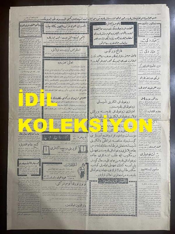 Osmanlıca Cumhuriyet Gazetesi, Orijinal Dönem Basım - 11 Mayıs 1926 - Sayı: 721 - Hicri: 27 Şevval 1344 - Türkiye İle ingiltere Arasında Akdedilecek Muahedenameyi Irak Hükümeti De İmzalayacak - Hariciye Encümeninde Dün Tevfik Rüştü Bey'in Huzuruyla Mühim Bir İctima Akdedildi - Gazi Paşa'nın Seyahati: Dün Mersin'e Muvasalat Buyurdular - 926 Bütçesi Cumartesi Müzakerede - İngiltere'de Grev Ve Karışıklık Devam Ediyor - Ankara -Berlin-Moskova İttihadına Doğru: Türkiye-Almanya Dostluk Muahedesi Mi? - Taksim'de Heykel: Taksim Meydanı Tevsi Edilecek Ve Gazi'nin Muazzam Bir Heykeli Rekz Olunacak - Halk Şarkıları: Halk Şarkılarını Toplamak Ve Nağmeleri Tesbit Etmek İçin Anadolu'ya Heyet Gidecek - İki Yeni Tayyaremiz: İzmir'de İki Tayyaremize İsim Konma Merasiminde Parlak Tezahürat - Kimler Mübadildir? 1912'den Sonra İstanbul'a Gelenlerin Hepsi Mübadil Değil Mi? - Evrak-ı Nakdiye Komisyonunun Dünkü İctimaı: Bir, Beş Ve On Liralık Evrak-ı Nakdiyede Gazi Paşa'nın Resimleri Bulunacaktır adlı eser, Kitap > Süreli Yayınlar > Gazeteler > Türkiye > Genel kategorisinde İkinci El olarak satıştadır.