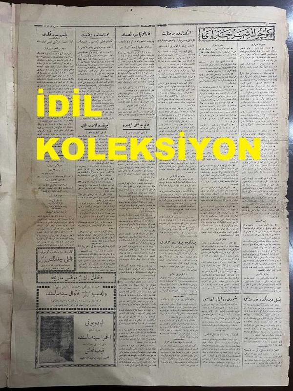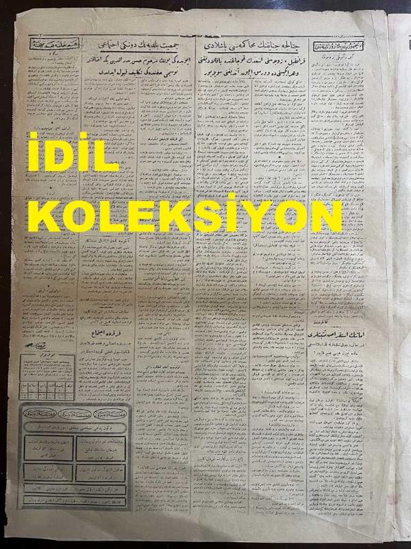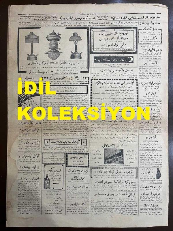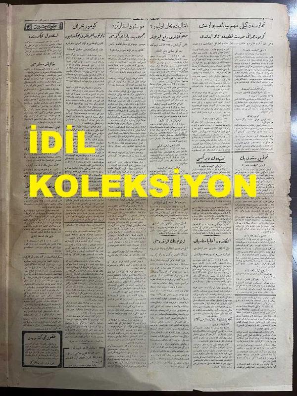 Osmanlıca Cumhuriyet Gazetesi, Orijinal Dönem Basım, (Ottoman Newspaper) - 11 Kasım (Teşrin-i Sani) 1926 - Sayı: 901 - Hicri: 5 Cemaziyelevvel 1345 - Tevfik Rüştü ve Memduh Şevket Beyler Dün Ankara'dan Gelmişler ve Gece Hamidiye İle Mösyö Çiçerin'e Mülaki Olmak Üzere Odesa'ya Hareket Etmişlerdir. Timurtaş Hazretleri de Birlikte Gitmiştir (Foto) Haydar Paşa İstasyonunda: Tevfik Rüştü Bey, Vali Süleyman Sami Bey, Memduh Şevket Bey - Odesa'da Türk-Rus-İran Muahedesinin İmzalanması Muhtemeldir - Ticaret Vekili Mustafa Rahmi Bey Mühim Bir Beyanatta Bulundu: Kömür Buhranı Suret-i Kat'iyede İzale Edildi - Açıkta Kalan Talebe Nihayet Muradlarına Erdiler. Dün Darülfünun'a Davet Edilen Halkalı Ziraat ve Orman Mekteb-i Alilerinin Duhul İmtihanlarını Kazanan Efendilere Mekteplere Kabul Edilecekleri Resmen Tebliğ Edilmiştir - Fatih Camii İçinde Azıtmış Bir Deli. Kasap Bıçağıyla Herkese Saldıran Adam Mecruhen Yakalandı - Moskova Sefaretimizde Cumhuriyet Bayramı Gecesi adlı eser, Kitap > Süreli Yayınlar > Gazeteler > Türkiye > Genel kategorisinde İkinci El olarak satıştadır.