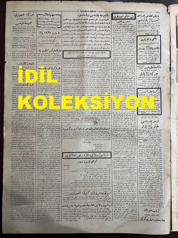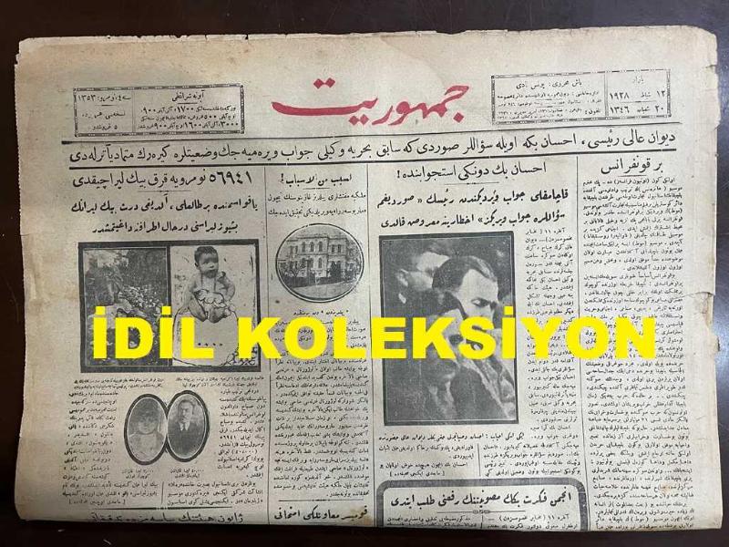 Osmanlıca Cumhuriyet Gazetesi, Orijinal Dönem Basım, (Ottoman Newspaper) - 12 Şubat 1928 - Sayı: 1353 - Hicri: 20 Şaban 1346 - Divan-ı Ali Reisi, İhsan Bey'e Öyle Sualler Sordu Ki Sabık Bahriye Vekili Cevap Veremeyecek Vaziyetlere Girerek Mütemadiyen Terledi. İhsan Bey Dünkü İsticvapta! Kaçamaklı Cevap Verdiğinden Reisin "Sorduğum Suallere Cevap Veriniz" İhtarına Maruz Kaldı - Encümen Fikret Bey'in Masuniyetinin Ref'ini Talep Etti - Japon Heyetinin Piyasamızda Tetkikatı Heyetin Gayesi, Türkiye Japonya Arasında Doğrudan Doğruya Münasebat-ı Ticariye Tesis Etmektir - Çok Çocuklu Ailelerin Resimlerini Derc Ediyoruz (Foto) Şirket-i Hayriye Mübayaat Müdürü Hikmet Bey'in Dokuz Evladı Vardır - Galip Kemali Bey'i İtham! Esbak Moskova Sefiri Başkasının Paralarını Sahibinin Rızası Olmadan Bankadan Almış! - Hangi Devirdeyiz? Hani Dayak Atılmıyordu? İki Gencin Polisten Dayak Yediğini Polis Tababeti Bile Tasdik Etti adlı eser, Kitap > Süreli Yayınlar > Gazeteler > Türkiye > Genel kategorisinde İkinci El olarak satıştadır.