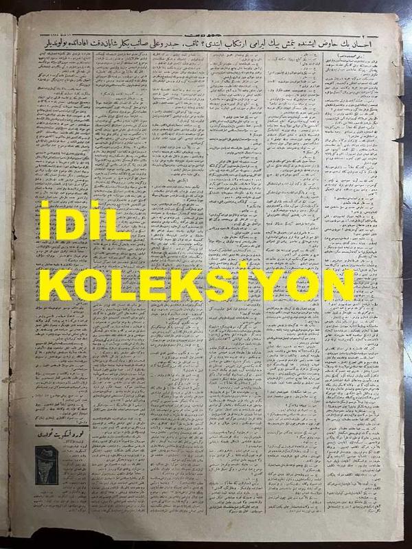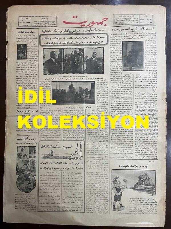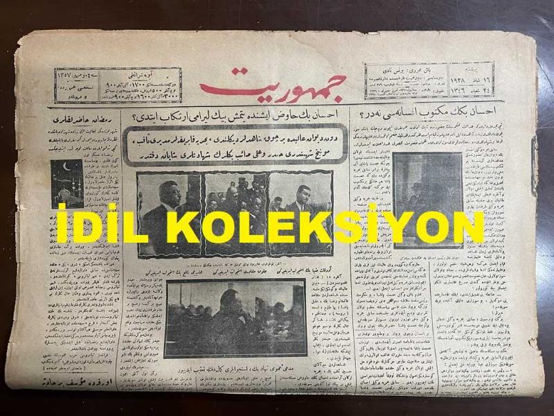 Osmanlıca Cumhuriyet Gazetesi, Orijinal Dönem Basım, (Ottoman Newspaper) - 16 Şubat 1928 - Sayı: 1357 - Hicri: 24 Şaban 1346 - İhsan Bey Havuz İşinde Yetmiş Bin Lira Mı İrtikap Etti? Dün Divan-ı Ali'de Birçok Şahitler Dinlendi, Bahriye Fabrikalar Müdürü Sakıp, Münih Şehbenderi Haydar ve Ali Saib Beylerin Şehadetleri Şayan-ı Dikkattir - (Foto) Avukat Ziya Bey, Hukuk Müşaviri, Muhasebeci Nafi Beyler İsticvap Ettirilirken. Müdde-i Umumi Nihat Bey İsticvapları Dinlerken - İhsan Bey'in Mektup Efsanesi Nedir? (Yunus Nadi) - Ramazan Hazırlıkları: Şehrimizdeki Faaliyet En Ziyade Şehzadebaşı'nda Nazar-ı Dikkate Çarpıyor, Vapurlar Gece Seferleri Yapacakları Gibi Tramvaylar Da Saat Üçe Kadar İşleyecektir - Japon Sergisi Açılıyor: Bugün Pera Palas'ta Küşad Ediliyor - Bursa'daki Amerikan Mektebi. Maarif Vekaleti, Bursa'da Sed Olunan Amerikan Mektebinin Talebeleri İle Meşguldür - Muhtelit Mübadele Komisyonunda Dün Tali Komisyonların Mesaisi Hakkında Bazı Esasat Tesbit Edilmiştir adlı eser, Kitap > Süreli Yayınlar > Gazeteler > Türkiye > Genel kategorisinde İkinci El olarak satıştadır.