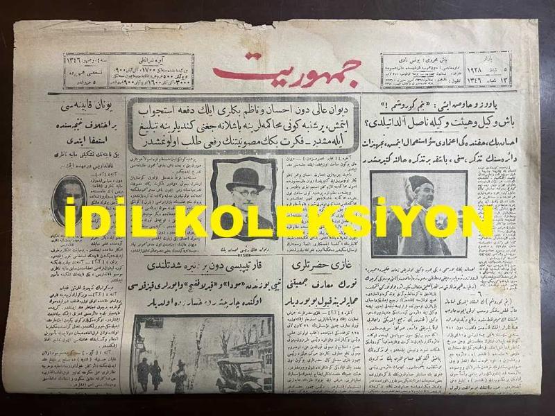 Osmanlıca Cumhuriyet Gazetesi, Orijinal Dönem Basım, (Ottoman Newspaper) - 5 Şubat 1928 - Sayı: 1346 - Hicri: 13 Şaban 1346 - Divan-ı Ali Dün İhsan ve Nazım Beyleri İlk Defa İsticvap Etmiş, Perşembe Günü Muhakemelerine Başlanacağını Kendilerine Tebliğ Eylemiştir-Fikret Bey'in Masuniyetinin Ref'i Talep Olunmuştur - Yavuz ve Havuz İşi: "Benim Görüşüm!" Başvekil ve Heyet-i Vekile Nasıl Aldatıldı? İhsan Bey, Hakkındaki İtimadı Suistimal Etmiş, Teçhizat Dairesinin Tezkiresini, Başka Bir Tezkire Haline Getirmiştir - Gazi Hazretleri Türk Maarif Cemiyetini Himayelerine Kabul Buyurdular - Kar Tipisi Dün Birden Bire Şiddetlendi. Tipi Yüzünden Moda ve Kırlangıç Vapurları Kız Kulesi Önünde Çarpışarak Hasarzede Oldular - Sahte Paralar da... Mübadele Dairesine Sürülmek İsteniyor. Evrak-ı Nakdiyeyi Muayene Eden Komisyon Bin Liraya Yakın Sahte Para Yakalamıştır - Etabli Sahtekarlarının Muhakemesine Başlandı. Bir Maznun "Polisteki Vicdansızlık Hiçbir Yerde Yoktur" Diyor adlı eser, Kitap > Süreli Yayınlar > Gazeteler > Türkiye > Genel kategorisinde İkinci El olarak satıştadır.