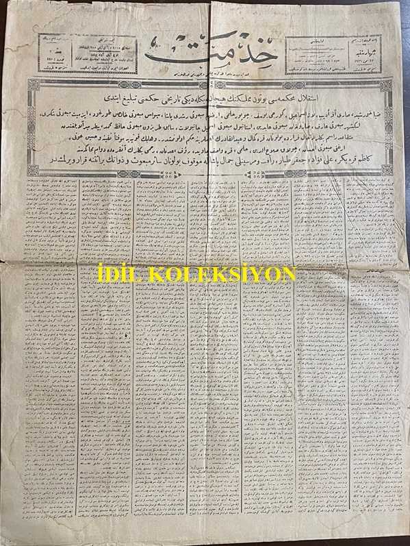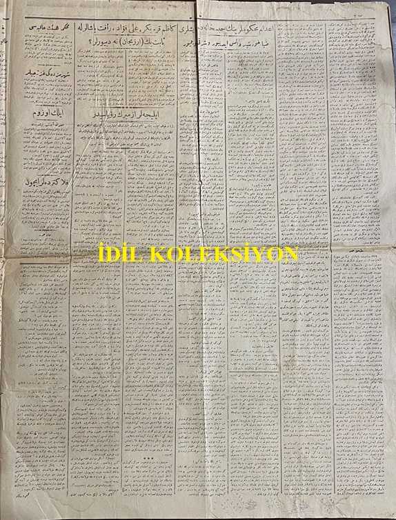 Osmanlıca Hizmet Gazetesi, Orijinal Dönem Basım, (Ottoman Newspaper) - 17 Temmuz 1926 - Sayı: 440 - İstiklal Mahkemesi Bütün Memleketin Heyecan ile Beklediği Tarihi Hükmünü Tebliğ Etti. Ziya Hurşit, Sarı Efe Edip, Laz İsmail, Gürcü Yusuf, Çopur Hilmi, Erzurum Mebusu Rüştü Paşa, Sivas Mebusu Halis Turgut, İzmit Mebusu Şükrü, Eskişehir Mebusu Arif, Saruhan Mebusu Abidin, İstanbul Mebusu İsmail Canpolat, Sabık Trabzon Mebusu Hafız Mehmet, Baytar Miralaylığından Mütekait Rasim Beylerle Hal-i Firarda Bulunan Kara Kemal ve Abdülkadir'in İdamlarına Hüküm Olunmuştur. Vehab'ın Konya'ya Muvakkaten Nefyine ve Hüseyin Avni, Ergani Mebusu İhsan, Çolak Selahattin, Hilmi, Kara Vasıf, Cavit, Rauf, Adnan, Rahmi Beylerin Ankara'da Devam-ı Muhakemesine Kazım Karabekir, Ali Fuat; Cafer Tayyar, Refet ve Mersinli Cemal Paşalarla Mevkuf Bulunan Sair Mebus ve Zevatın Beraatına Karar Verilmiştir - İdam Mahkumlarının Hapishane Yaşayışları: Ziya Hurşit Dans Ediyor ve Şarkı Söylüyor adlı eser, Kitap > Süreli Yayınlar > Gazeteler > Türkiye > Genel kategorisinde İkinci El olarak satıştadır.