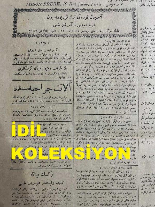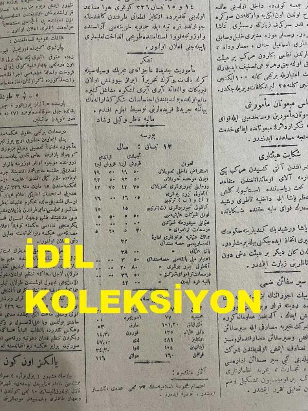 Osmanlıca İkdam Gazetesi, Orijinal Dönem Basım - 14 Nisan 1920 - Sayı: 8321 - Hicri: 24 Recep 1338 - Rumi: 14 Nisan 1336 - Hükümet-i Merkeziye Ve Kuvay-ı Milliye - Adliye Nazırı Ali Rüştü Efendi Hazretlerinin Beyanatı - İtaat Etmezlerse Ne Gibi Tedabir İttihaz Olunacak? - Divan-ı Harplerde Tadilat - İzmir'in Atisi Yeniden Müzakere Edilecek - San Remo Konferansı 19 Nisan'da Küşad Edilecek Ve Fransa, Türkiye Müzakeratına İştirak Edecektir, Mevad-ı Askeriye El'an Muallaktadır - Cemiyet-i Akvam'ın Son İctimaında: Ermenistan Ve Ekalliyetler Meselesi - Bolşeviklerle Sulh: Lehlerle Tatil-i Muhasama Müzakeratı - Prens Sabahattin Bey'e Kabineye Katılması Teklifinin Asılsızlığı - Almanya İşgalinde İngiltere Ve Fransa - Macaristan'da Komünist Harekatı - Anadolu'ya Tebligat İcrası Hakkında Evkaf Nazırının Beyanatı - İstanbul'a Avdet Eden Üsera adlı eser, Kitap > Süreli Yayınlar > Gazeteler > Türkiye > Genel kategorisinde İkinci El olarak satıştadır.