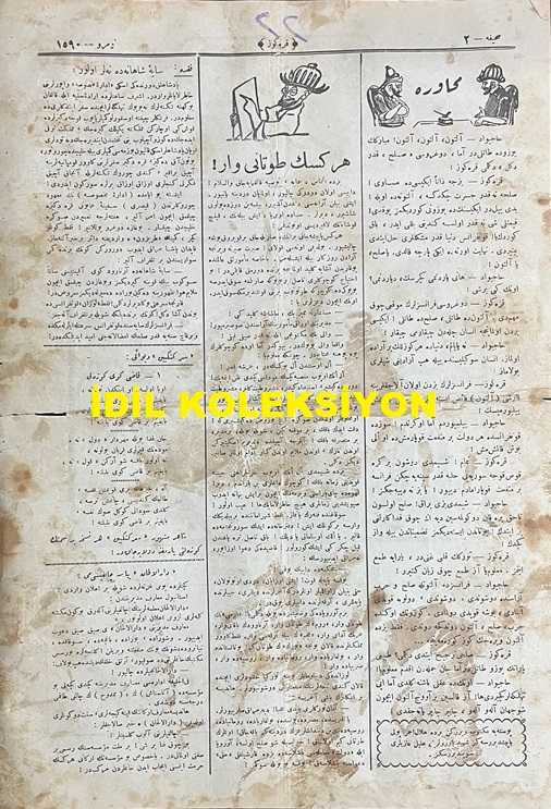 Osmanlıca Karagöz Mizah Dergisi-Gazetesi, Orijinal Dönem Basım, (Ottoman Magazine-Newspaper-Journal Illustré Cara-Gueuz) - 13 Haziran 1923 - Sayı: 1590 - Hicri: 28 Şevval 1341 - Rumi: 13 Haziran 1339 - Lozan Barış Konferansı'na Dair İsmet İnönü'yü Tasvir Eden Karikatür: "Hacivat: Hiç Kıvranma Sulh Kızı, Artık Kurtuluş Yok Teslim Ol! Karagöz: Teslim Ol Zira Senin Yüzünden Çektiğimiz Yüreğimize İşledi Teslim Ol da Şerefine Şu Aşıkların Ağız Tadıyla Şerbetini İçsinler!" - Serkenkebin Divanı: "Kadıköy Güzeli" Şair-i Meşhur Serkenkebin (Aka Gündüz) Her Nüsha Bir Semtin Güzelini Parmağına Dolayacaktır! - Lozan Barış Konferansı'na Dair İsmet İnönü'yü Tasvir Eden Karikatür: "Fransız: Haberiniz Olsun! Birini Bırakıp İkisini Alıyorum! Karagöz: Yağma Yok Çelebi Hakkına Razı Ol Ya Altını Bırakır Sulhu Alırsın, Yahut Üçünü Birden Almaya Razı Olursun!", Burhan Cahit (MORKAYA) tarafından kaleme alınmıştır. Kitap 1923 yılında Ali Fuat ve Şürekası Karagöz Gazetesi Şirketi tarafından [İstanbul] yayınlanmıştır. Satışta olan kitap, yayınevinin 1.590. baskısıdır. 4 sayfadır. Osmanlıca Karagöz Mizah Dergisi-Gazetesi, Orijinal Dönem Basım, (Ottoman Magazine-Newspaper-Journal Illustré Cara-Gueuz) - 13 Haziran 1923 - Sayı: 1590 - Hicri: 28 Şevval 1341 - Rumi: 13 Haziran 1339 - Lozan Barış Konferansı'na Dair İsmet İnönü'yü Tasvir Eden Karikatür: "Hacivat: Hiç Kıvranma Sulh Kızı, Artık Kurtuluş Yok Teslim Ol! Karagöz: Teslim Ol Zira Senin Yüzünden Çektiğimiz Yüreğimize İşledi Teslim Ol da Şerefine Şu Aşıkların Ağız Tadıyla Şerbetini İçsinler!" - Serkenkebin Divanı: "Kadıköy Güzeli" Şair-i Meşhur Serkenkebin (Aka Gündüz) Her Nüsha Bir Semtin Güzelini Parmağına Dolayacaktır! - Lozan Barış Konferansı'na Dair İsmet İnönü'yü Tasvir Eden Karikatür: "Fransız: Haberiniz Olsun! Birini Bırakıp İkisini Alıyorum! Karagöz: Yağma Yok Çelebi Hakkına Razı Ol Ya Altını Bırakır Sulhu Alırsın, Yahut Üçünü Birden Almaya Razı Olursun!" adlı eser Osmanlıca dilindedir.