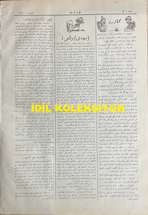 Osmanlıca Karagöz Mizah Dergisi-Gazetesi, Orijinal Dönem Basım, (Ottoman Magazine-Newspaper-Journal Illustré Cara-Gueuz) - 2 Temmuz 1924 - Sayı: 1700 - Hicri: 1 Zilhicce 1342 - Rumi: 2 Temmuz 1340 - Tanin ve Cumhuriyet Gazetelerinin İttihatçılık Üzerine Atışmalarına Dair Karikatür: Hiç Yoktan Dedikodu "Karagöz: Sizi Gidi Tek Durmazlar, Sizi Gidi Cambazlar, Hala Dedikodu Ha! Şöyle Edebinizle Susun Bakayım! Memleket Felaketten Yeni Kurtuldu. Yine Fırkacılığa Başlarsanız Yukarıdan İnecek Köteği Sizin Yüzünüzden Hepimiz Hak Ederiz ha!" - İstanbul Şehremini Emin Erkul'u Tasvir Eden Karikatür: Yeni Şehremini İş Başında! "Bu da Öteki Gibi İttihatçı Kokuyor! Karagöz: A Beyim, Sen de Tuhafsın ya, Her Şeyi Böyle İttihatçı Kokuyor Diye Kırıp Dağıtırsan Memlekette Sağlam Bir Şey Kalmaz!" - Karikatür: Yağmur ve Sellerin Sonu, Burhan Cahit (MORKAYA) tarafından kaleme alınmıştır. Kitap 1924 yılında Ali Fuat ve Şürekası Karagöz Gazetesi Şirketi tarafından [İstanbul] yayınlanmıştır. Satışta olan kitap, yayınevinin 1.700. baskısıdır. 4 sayfadır. Osmanlıca Karagöz Mizah Dergisi-Gazetesi, Orijinal Dönem Basım, (Ottoman Magazine-Newspaper-Journal Illustré Cara-Gueuz) - 2 Temmuz 1924 - Sayı: 1700 - Hicri: 1 Zilhicce 1342 - Rumi: 2 Temmuz 1340 - Tanin ve Cumhuriyet Gazetelerinin İttihatçılık Üzerine Atışmalarına Dair Karikatür: Hiç Yoktan Dedikodu "Karagöz: Sizi Gidi Tek Durmazlar, Sizi Gidi Cambazlar, Hala Dedikodu Ha! Şöyle Edebinizle Susun Bakayım! Memleket Felaketten Yeni Kurtuldu. Yine Fırkacılığa Başlarsanız Yukarıdan İnecek Köteği Sizin Yüzünüzden Hepimiz Hak Ederiz ha!" - İstanbul Şehremini Emin Erkul'u Tasvir Eden Karikatür: Yeni Şehremini İş Başında! "Bu da Öteki Gibi İttihatçı Kokuyor! Karagöz: A Beyim, Sen de Tuhafsın ya, Her Şeyi Böyle İttihatçı Kokuyor Diye Kırıp Dağıtırsan Memlekette Sağlam Bir Şey Kalmaz!" - Karikatür: Yağmur ve Sellerin Sonu adlı eser Osmanlıca dilindedir.
