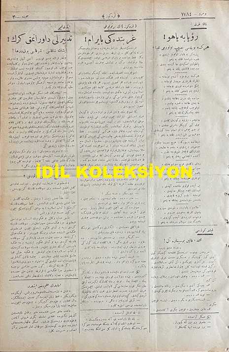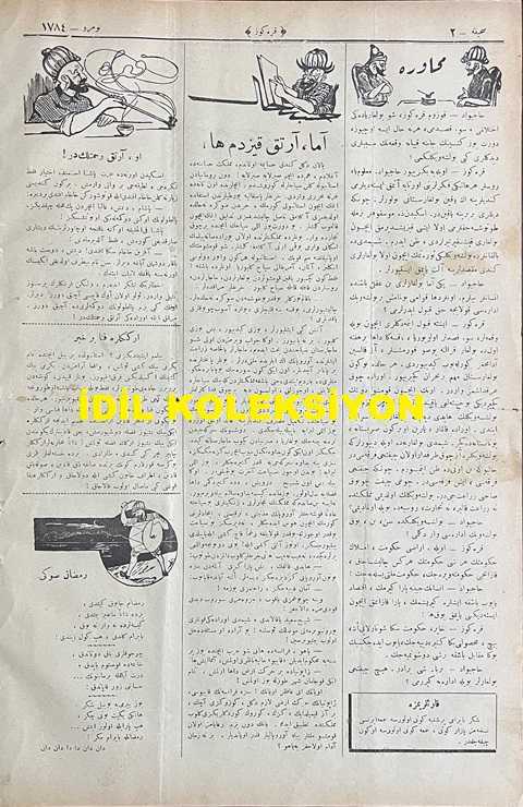 Osmanlıca Karagöz Mizah Dergisi-Gazetesi, Orijinal Dönem Basım, (Ottoman Magazine-Newspaper-Journal Illustré Cara-Gueuz) - 22 Nisan 1925 - Sayı: 1784 - Hicri: 29 Ramazan 1343 - 23 Nisan Temalı Kapak Karikatürü: 23 Nisan-Millet Bayramı "Karagöz: Kahraman Mehmet Çavuş! Kurtardığın Vatanın Yavruları Yeni Bayramda Sana Vatan Çiçeklerini Hediye Ediyorlar. Hainleri, Asileri, Zalimleri Bu Topraktan Sürüp Çıkaranları, Millet Unutmadı, Unutmuyor ve Unutmayacak!" - Karikatür: Bulgaristan'da Bolşevik İhtilali! "Hacivat: Aman Karagöz. Bu İş Gittikçe Sarpa Sarıyor. Bugün Sofya'da Patlayan Bombanın Yarın Belgrat'ta, Öbür Gün Bükreş'te Yüzlerce Binlerce Zavallıyı Mahvetmeyeceğini Kim Temin Eder. Karagöz: Doğru Söylüyorsun Hacivat, Bana Kalsa Bu Tehlikeye Komşu Devletler Hep Beraber Karşı Durmaya Çalışmalı, Yoksa Balkanlar Tırtıl Üşmüş Çam Ağacına Dönecek ha!" adlı eser, Kitap > Süreli Yayınlar > Gazeteler > Türkiye > Genel kategorisinde İkinci El olarak satıştadır.