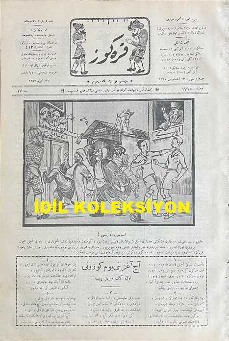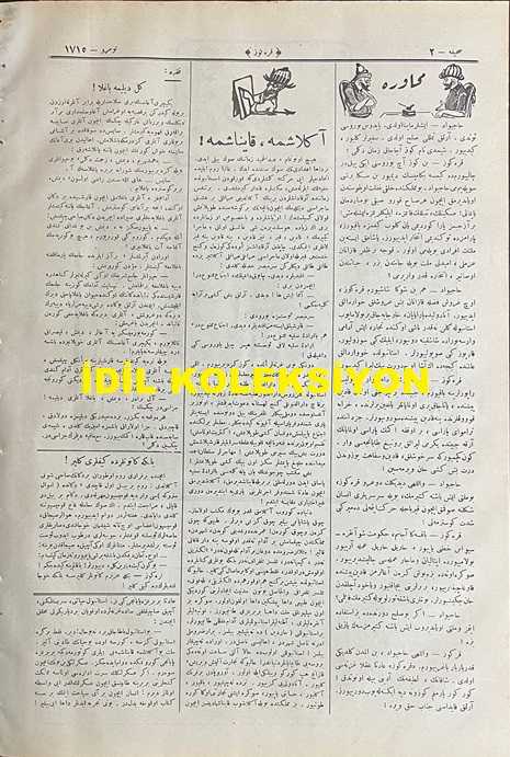 Osmanlıca Karagöz Mizah Dergisi-Gazetesi, Orijinal Dönem Basım, (Ottoman Magazine-Newspaper-Journal Illustré Cara-Gueuz) - 23 Ağustos 1924 - Sayı: 1715 - Hicri: 21 Muharrem 1342 - Rumi: 23 Ağustos 1340 - Karikatür: "Hacivat: Müftülük Hocalarıyla Kız Mektebi Muallimleri Eski Şeyhülislam Kapısını Paylaşamıyor, Gümrük Memurlarıyla Emanet Memurları Bir Caddeyi Açmak İçin Birbirleriyle Uzlaşamıyor. Galatasaraylılarla Fenerbahçeliler Şakayı Kakaya Çeviriyor. Mebuslarla Muharririler Birbirlerini Öldürmeye Kalkıyorlar. Bu İş Ne İş Yahu! Karagöz: Doya Doya Seyret Hacivat Ömründe Kör Dövüşü Seyretmedinse Bundan Ala Fırsat Ele Geçmez!" - Karikatür: "Mütekaitler, Malüller, Amelmandeler ve Geçler: Karagöz Çelebi, Biz Açıktayız. Şehremini Bey'e Söyle Münhal Yerlere Bizi Kayırsın! Karagöz: Pekala Amma Evvela Şu Eli Ayağı Tutar Gençler Aranızdan Çekilsin Bakalım! Altmışından Aşağı Memur Almak Şehremini Beyin Prensibine Muhaliftir!" adlı eser, Kitap > Süreli Yayınlar > Gazeteler > Türkiye > Genel kategorisinde İkinci El olarak satıştadır.