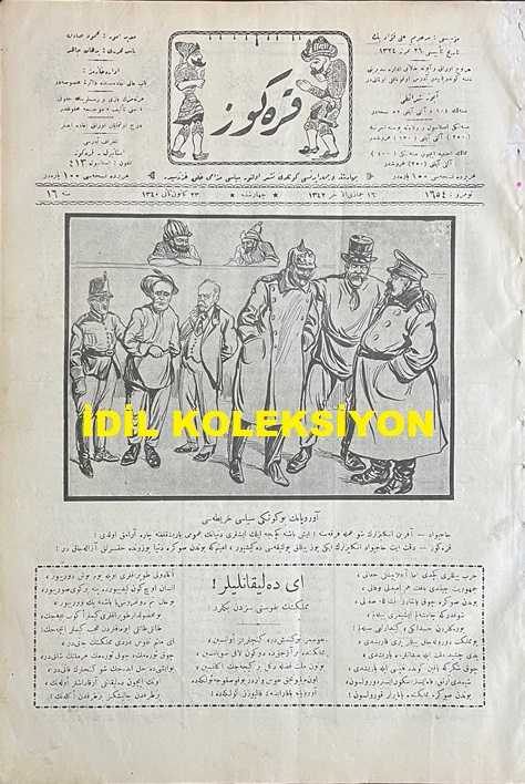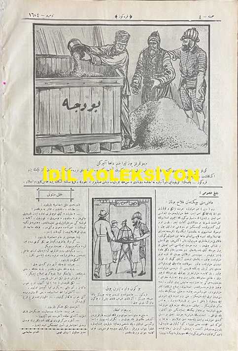 Osmanlıca Karagöz Mizah Dergisi-Gazetesi, Orijinal Dönem Basım, (Ottoman Magazine-Newspaper-Journal Illustré Cara-Gueuz) - 23 Ocak 1924 - Sayı: 1654 - Hicri: 16 Cemaziyelahir 1342 - Rumi: 23 Kanun-i Sani 1340 - Karikatür: Avrupa'nın Bugünkü Siyasi Haritası "Hacivat: Aferin İngilizlerin Şu Amele Fırkasına! İş Başına Geçince İlk İşleri Dünyanın Umumi Barışıklığına Çare Aramak Oldu! Karagöz: Dikkat Et Hacivat İngilizlerin İki Yüz Yıllık Politikası Değişiyor, Eminim ki Bundan Sonra Dünya Yüzünde Haksızlık Azalacaktır!" - Karikatür: Mebuslarımız Yüz Lira Zam Daha Alırken "Köylü Dayı: Aklım Ermedi Gitti Yahu! Siz Hani Bu Yıl Öşrü Eksik Alacaktınız, Hani Tohumluk Verecektiniz. Hepsinden Vazgeçtim Bizim Ekmeklik de Caba Gidiyor. Karagöz: Baksana Köylü Dayı Şu Ambara Ne Attıksa Dolmadı, Sen Hele Bu Yıl Dişini Sıkıver, Zorla Değil Ya Senin Ekmek Bize Tatlı Geliyor Vesselam!" adlı eser, Kitap > Süreli Yayınlar > Gazeteler > Türkiye > Genel kategorisinde İkinci El olarak satıştadır.