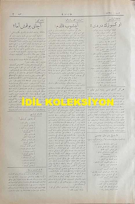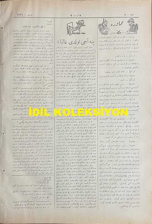 Osmanlıca Karagöz Mizah Dergisi-Gazetesi, Orijinal Dönem Basım, (Ottoman Magazine-Newspaper-Journal Illustré Cara-Gueuz) - 24 Eylül 1924 - Sayı: 1724 - Hicri: 24 Safer 1342 - Rumi: 24 Eylül 1340 - Musul Meselesine Dair İsmet İnönü'yü Tasvir Eden Karikatür: Musul'un Gazı Gazi'nindir! "İngiliz: Ama Bak Bunu Ben Zaten Elimde Tutuyorum Sen Ne Yapacaksın! Türk: Zarar Yok, Şu Arabaya Binince Ben de Tutarım!" - Karikatür: Kafkasya İhtilaline Karşı "Hacivat: İş Kızıştı Karagöz, Bolşevikler Gemi Gemi Asker Getiriyor İhtilalciler de Avuç Avuç Kurşun Harcıyorlar, Baksana Top Sesleri Bize Kadar Geliyor! Karagöz: Aldırma Hacivat. Komşudaki Karı Koca Kavgasına Karışmaya Gelmez. Sonra İkisi Barışır da Karışan Kaka Olur!" - Karikatür: İstanbul Fıskiyesi, Üsküdar Kerbelası adlı eser, Kitap > Süreli Yayınlar > Gazeteler > Türkiye > Genel kategorisinde İkinci El olarak satıştadır.