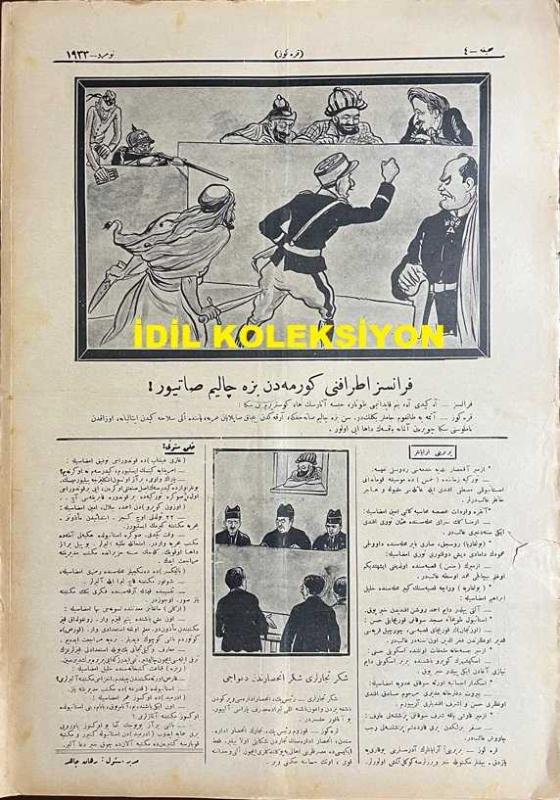 Osmanlıca Karagöz Mizah Dergisi-Gazetesi, Orijinal Dönem Basım, (Ottoman Magazine-Newspaper-Journal Illustré Cara-Gueuz) - 25 Eylül 1926 - Sayı: 1933 - Karikatürist Kozma Togo'nun Çalışması: Pangalos Hapse Girmeseydi, Harbe Girecekmiş! "Atina Hapishanesinde Pangalos: Ah Vire Diyavlo, Şu Kondilis Beni Zindana Atmasaydı Türklere Bir Harp Açacaktım, Bütün Dünyaya Şöhret Salacaktım. Karagöz: Hiç Üzülme Aftos Pangalos, O Zaman da Seni Tutup Zindana Atan İsmet Paşamız Olurdu" - Fotoğraf: Yurdumuzun Güzel Köşelerinden Karadeniz'in Güzel Kıyısı Ünye - Fotoğraf: Yurdumuzun Güzel Köşelerinden Cenubi Anadolu'nun Pırlantası: Güzel Urfa. Görünen Cami, Cami-i Kebir Yanındaki Halilürrahman Suyu - İsmet İnönü'yü Tasvir Eden Karikatür: Fransız Etrafını Görmeden Bize Çalım Satıyor! "Fransız: Ah Gidi Ah, Benim Kaptanımı Tutar, Hapse Atarsın Ha, Gösteririm Ben Sana! Karagöz: Atma be Tangom Camlar Beyliktir. Sen Bize Çalım Satacağına, Yanında Eli Silaha Gidin İtalyan'a Baksan Daha İyi Olur" adlı eser, Kitap > Süreli Yayınlar > Gazeteler > Türkiye > Genel kategorisinde İkinci El olarak satıştadır.