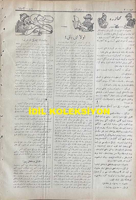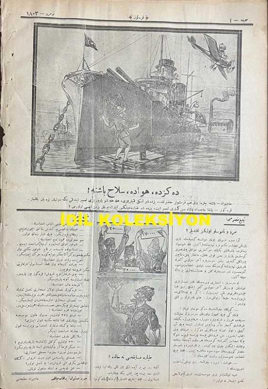 Osmanlıca Karagöz Mizah Dergisi-Gazetesi, Orijinal Dönem Basım, (Ottoman Magazine-Newspaper-Journal Illustré Cara-Gueuz) - 27 Haziran 1925 - Sayı: 1803 - Hicri: 6 Zilhicce 1343 - Rumi: 27 Haziran 1341 - Karikatür: Türk-Yunan Dostluğu Başlamış! "Yunan Murahhası: Teşekkür Ederim Hariciye Vekili Bey, Aramızda Tam Barışıklık Oldu. Artık Birbirimizin Elini Dostça Sıkar, Güzel Güzel Yaşarız. Karagöz: Güle Güle, Fakat Giderayak Şu Afyon Kutusundan Bir Nefeslik Al. İmzaladığın Muahedeye Sadık Kalmanız İçin Ara Sıra Afyonu Hatırlamanız Fena Olmaz Zannederim" - İtalyalı Komşularımız İstanbul'u Gezdiler, Türkiye'nin Gidişinde Bilmem Neler Sezdiler, Kalplerine Ne Doğarsa Defterlere Çizdiler (...) - Karikatür: Denizde, Havada, Silah Başına! "Hacivat: Başka Çare Yok! Hep Komşular Hazırlıkta, Biz de Şu Eski Gemilerimizi, Hele Hele Şu Yavuzumuzu Tamir Ettik mi Değme Düşman Bize Yan Bakamaz. Karagöz: Yaşa Hacivat Yaşa, Sen Gemileri Tamir Et, Ben de Tayyareciliğimi İlerleteyim Bak Bizden İyisi Olur mu?" adlı eser, Kitap > Süreli Yayınlar > Gazeteler > Türkiye > Genel kategorisinde İkinci El olarak satıştadır.