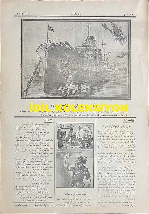 Osmanlıca Karagöz Mizah Dergisi-Gazetesi, Orijinal Dönem Basım, (Ottoman Magazine-Newspaper-Journal Illustré Cara-Gueuz) - 27 Haziran 1925 - Sayı: 1803 - Hicri: 6 Zilhicce 1343 - Rumi: 27 Haziran 1341 - Karikatür: Türk-Yunan Dostluğu Başlamış! "Yunan Murahhası: Teşekkür Ederim Hariciye Vekili Bey, Aramızda Tam Barışıklık Oldu. Artık Birbirimizin Elini Dostça Sıkar, Güzel Güzel Yaşarız. Karagöz: Güle Güle, Fakat Giderayak Şu Afyon Kutusundan Bir Nefeslik Al. İmzaladığın Muahedeye Sadık Kalmanız İçin Ara Sıra Afyonu Hatırlamanız Fena Olmaz Zannederim" - İtalyalı Komşularımız İstanbul'u Gezdiler, Türkiye'nin Gidişinde Bilmem Neler Sezdiler, Kalplerine Ne Doğarsa Defterlere Çizdiler (...) - Karikatür: Denizde, Havada, Silah Başına! "Hacivat: Başka Çare Yok! Hep Komşular Hazırlıkta, Biz de Şu Eski Gemilerimizi, Hele Hele Şu Yavuzumuzu Tamir Ettik mi Değme Düşman Bize Yan Bakamaz. Karagöz: Yaşa Hacivat Yaşa, Sen Gemileri Tamir Et, Ben de Tayyareciliğimi İlerleteyim Bak Bizden İyisi Olur mu?" adlı eser, Kitap > Süreli Yayınlar > Gazeteler > Türkiye > Genel kategorisinde İkinci El olarak satıştadır.