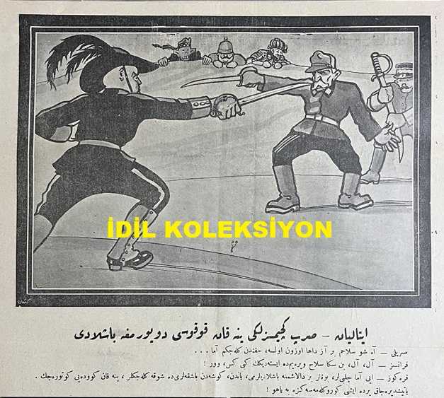Osmanlıca Karagöz Mizah Dergisi-Gazetesi, Orijinal Dönem Basım, (Ottoman Magazine-Newspaper-Journal Illustré Cara-Gueuz) - 27 Nisan 1927 - Sayı: 1994 - Karikatür: Bütün Devletler Silah Fabrikalarını Yağma Edercesine Silahlanıyorlar! "Fabrikatör: Acele Etmeyin Yahu! Ne Varsa Verdik. Boyacı Küpü Değil ki Daldırıp Çıkarıp Silah Yapalım. Karagöz: Ar Yılı Değil Kar Yılı Birader, Baksana Hepsi Depolarını Tüfek, Bomba, Top, Mitralyözle Dolduruyor, Tayyarelerden Ordu, Zırhlılardan Donanma Yapıyorlar. Bu Sıcağa Kar mı Dayanır!" - Fotoğraf: İstanbul'da Çocuk Bayramı: Kız Lisesi Sporcu Talebelerinin Geçit Resmi - Fotoğraf: İzmir'de Çocuk Bayramı Merasiminden, Himaye-i Etfal Reisi Ethem Bey ve Bir Grup - Karikatür: İtalyan-Sırp Geçimsizliği Yine Kan Kokusu Duyurmaya Başladı - Karikatür: İçki İnhisarını Hükümet İşletecek Galiba, Burhan Cahit (MORKAYA) tarafından kaleme alınmıştır. Kitap 1927 yılında Ali Fuat ve Şürekası Karagöz Gazetesi Şirketi tarafından [İstanbul] yayınlanmıştır. Satışta olan kitap, yayınevinin 1.994. baskısıdır. 4 sayfadır. Osmanlıca Karagöz Mizah Dergisi-Gazetesi, Orijinal Dönem Basım, (Ottoman Magazine-Newspaper-Journal Illustré Cara-Gueuz) - 27 Nisan 1927 - Sayı: 1994 - Karikatür: Bütün Devletler Silah Fabrikalarını Yağma Edercesine Silahlanıyorlar! "Fabrikatör: Acele Etmeyin Yahu! Ne Varsa Verdik. Boyacı Küpü Değil ki Daldırıp Çıkarıp Silah Yapalım. Karagöz: Ar Yılı Değil Kar Yılı Birader, Baksana Hepsi Depolarını Tüfek, Bomba, Top, Mitralyözle Dolduruyor, Tayyarelerden Ordu, Zırhlılardan Donanma Yapıyorlar. Bu Sıcağa Kar mı Dayanır!" - Fotoğraf: İstanbul'da Çocuk Bayramı: Kız Lisesi Sporcu Talebelerinin Geçit Resmi - Fotoğraf: İzmir'de Çocuk Bayramı Merasiminden, Himaye-i Etfal Reisi Ethem Bey ve Bir Grup - Karikatür: İtalyan-Sırp Geçimsizliği Yine Kan Kokusu Duyurmaya Başladı - Karikatür: İçki İnhisarını Hükümet İşletecek Galiba adlı eser Osmanlıca dilindedir.