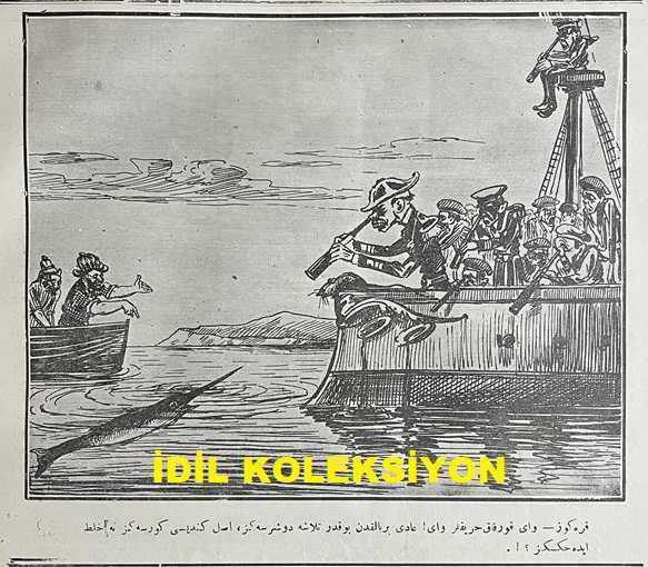 Osmanlıca Karagöz Mizah Dergisi-Gazetesi, Orijinal Dönem Basım, (Ottoman Magazine-Newspaper-Journal Illustré Cara-Gueuz) - 29 Temmuz 1916 - Sayı: 881 - Hicri: 28 Ramazan 1334 - Rumi: 16 Temmuz 1332 - Karikatür: "Karagöz: Şaşarım Aklınıza!.. Ulan Baksanıza Şöyle Böyle Çekiştirmekle Yerinden Kımıldayacak Şeye Benziyor mu?!..." - Muhavere: Bayram! - Hasbihal: Çalgı Çağanağın Tesiri - Rusya Kralı'nın Müstafi Hariciye Nazırı Sazanof'a Namesi - Karikatür: "Karagöz: Vay Korkak Herifler Vay! Adi Bir Balıktan Bu Kadar Telaşa Düşerseniz, Asıl Kendisini Görseniz Ne Halt Edeceksiniz?!.." adlı eser, Kitap > Süreli Yayınlar > Gazeteler > Türkiye > Genel kategorisinde İkinci El olarak satıştadır.