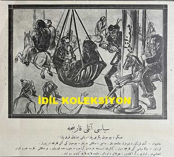 Osmanlıca Karagöz Mizah Dergisi-Gazetesi, Orijinal Dönem Basım, (Ottoman Magazine-Newspaper-Journal Illustré Cara-Gueuz) - 30 Eylül 1925 - Sayı: 1830 - Hicri: 11 Rebiülevvel 1344 - Rumi: 30 Eylül 1341 - Karikatür: Etme Be Keşiş, Var Bunda Bir İş! "İzmir'in İstirdadı Günü Atina'da Acı Hatıralar Tazelenmiş" "Atina Metropolidi: Ah Vire Matefeö Göreceksiniz, İzmir Yunanlı Olacaktır. Karagöz: Etme Be Koca Keşiş. Bak Bakalım Ardındaki Tekme Yarası Kapandı mı? Acısı Bittiyse Haber Ver. Bu Sefer Ta Ciğerine Bir Pehlivan Yakısı Açayım" - Karikatür: Siyasi Atlı Karınca Asker Çocuk, Yirmi Para, Başı Bozuk Kırk Para! "Hacivat: Aman Karagöz, Şunların Haline de Bak. Saçlı Sakallı Herifler, Çocuk Gibi Atlı Karınca Oynuyorlar. Karagöz: Buna Siyasi Atlı Karınca Derler. Kikirik Usta Tarafından Ara Sıra Cenevre'de Kurulur. Bu Sakallı Beyler de Cemiyet-i Akvam Azasıdır. Onları Biraz Eğlendirir, Hoplatır, Oynatır. Alem de Katıla Katıla Gülüp Seyreder" adlı eser, Kitap > Süreli Yayınlar > Gazeteler > Türkiye > Genel kategorisinde İkinci El olarak satıştadır.