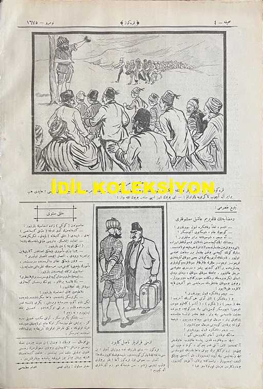 Osmanlıca Karagöz Mizah Dergisi-Gazetesi, Orijinal Dönem Basım, (Ottoman Magazine-Newspaper-Journal Illustré Cara-Gueuz) - 5 Nisan 1924 - Sayı: 1675 - Hicri: 30 Şaban 1342 - Rumi: 5 Nisan 1340 - Karikatür: İstanbul Valisi İyileşti "Cemiyet-i Belediye Azası: Buyurunuz Vali Beyefendimiz Buyurunuz Efendim, Allah Vücudunuza Sıhhat, Kesenize Servet, ve Cemiyet-i Acizanemize Olan Muhabbetinize Kuvvet İhsan Buyursun! Karagöz: Bana Sorarsan Vali Bey, Allah Aklına Kuvvet, Kalbine Merhamet ve Harekatına da Basiret İhsan Buyursun Derim. Çünkü Bu Gidişle İstanbullular Sana Teşekkür Ederlerken Bile Gözleri Dolacak!" - Karikatür: Rahmet mi, Merhamet mi? "Karagöz: Ey İstanbullular, Başka Memleketlerde Kuraklıktan Rahmet Duasına Çıkarlar. Biz Pahalılktan Merhamet Duasına Çıkarsak Ayıp mı? Haydi Hep Beraber El Açıp Tanrıya Yalvaralım: Ey Büyük Şehremini Senden Büyük Allah Var!" adlı eser, Kitap > Süreli Yayınlar > Gazeteler > Türkiye > Genel kategorisinde İkinci El olarak satıştadır.