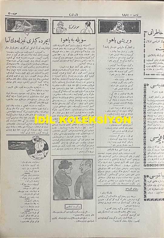Osmanlıca Karagöz Mizah Dergisi-Gazetesi, Orijinal Dönem Basım, (Ottoman Magazine-Newspaper-Journal Illustré Cara-Gueuz) - 7 Nisan 1926 - Sayı: 1884 - Karikatürist Kozma Togo'nun Çalışması: Avrupa'ya Kara Bulutlar Yaklaşıyor! "Hacivat: Hayrola Karagöz, Neler Görüyorsun. Karagöz: Aman Hacivat, Orasını Hiç Sorma. Avrupa'nın Üstüne Bir Kara Bulut Geliyor ki Bir Koparsa Harb-i Umumi Yanında Nisan Yağmuru Gibi Kalacak" - Gazimizin Hatıratı Türkiye'nin En Büyük Gazetesi Olan Milliyet Gazetesi'nde Neşredilmeye Başladı - Karikatür: Yunanın Postu Başında İki Sırtlan "Pangalos: Reis-i Cumhur Olsam Şu Deriden Kendime Gocuk Çıkarabilir miyim Acaba? Sırplı: Delik Deşik Amma Bir Köşesinden Bana Potur Çıkacağa Benziyor, Sahibi Oyalanınca Hemen Kesip Almalı" - Karikatür: Bir de Yangından Koruma Şirketi Çıktı adlı eser, Kitap > Süreli Yayınlar > Gazeteler > Türkiye > Genel kategorisinde İkinci El olarak satıştadır.