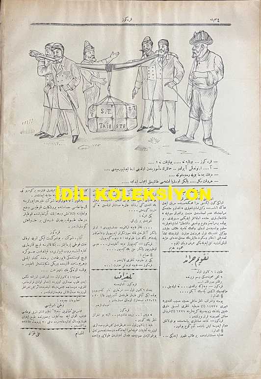 Osmanlıca Karagöz Mizah Dergisi-Gazetesi, Orijinal Dönem Basım, (Ottoman Magazine-Newspaper-Journal Illustré Kara-Gueuz) - 21 Aralık 1908 - Sayı: 43 - Hicri: 27 Zilkade 1326 - Rumi: 8 Kanun-i Evvel 1324 - Mahut Gazetenin Lisanından: Nice Yıl Mesned-i Bala-yı Gazetede Karar Ettim Edip Hırsızlığı İcat Bıraktım Yadigar Ettim. Değil Maliyeden Adliyeden Yalnız Çalıp Çarptım Serapa Milleti Soydum da Kesb-i İştihar Ettim.... - Karikatür: "Hacivat: Karagöz... Bu Balya Ne... Bu Kıyafet Ne?... A... Unuttun mu Birader... Hamalların Memurinden Olduğu İddia Edilmiyor muydu... Hacivat: Demek Badema Böyle Redingotla... Karagöz: Her Vakit Değil... Yalnız Avusturya Emtiası Taşımak İcap Edince..." - Şehremini Beyefendi'ye Açık Mektup adlı eser, Kitap > Süreli Yayınlar > Gazeteler > Türkiye > Genel kategorisinde İkinci El olarak satıştadır.