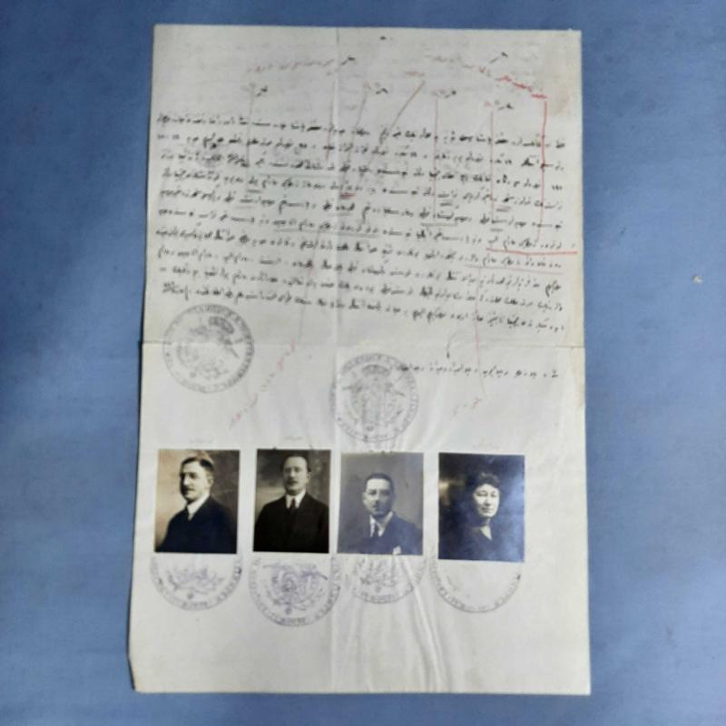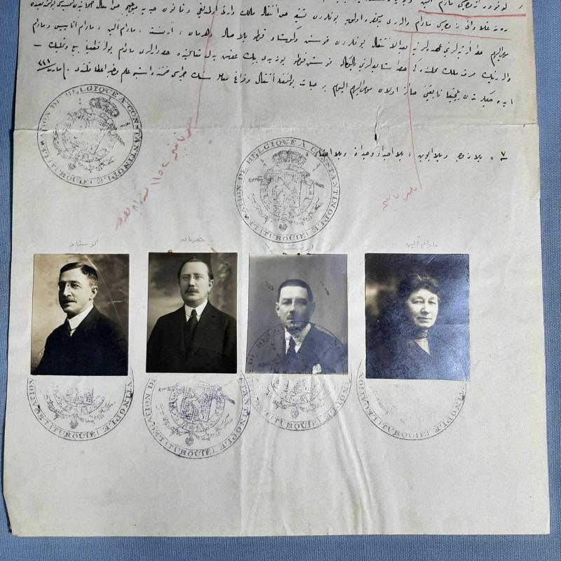 Osmanlıca yazılmış, 4 adet Belçika vatandaşına verilmiş konsolosluk belgesi. Belge fotoğraflı, mühürlü iyi bir durumdadır.