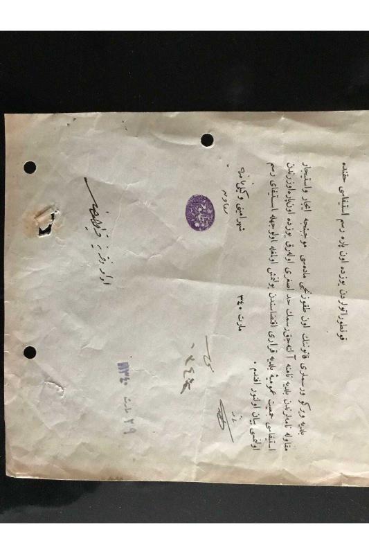 Osmanlıca Mühürlü Evrak - Istanbul 3. Katibi Adliye 1340 başlıklı antika/koleksiyon objesinin menşei belirtilmemiştir. Objenin ait olduğu dönem bilinmeketedir.