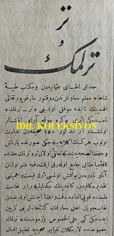 Osmanlıca Sabah Gazetesi, Orijinal Dönem Basım, (Ottoman Newspaper) - 24 Temmuz 1890 - Sayı: 326 - Hicri: 7 Zilhicce 1307 - Rumi: 12 Temmuz 1306 - Umum Muhacirin Komisyon-ı Alisi'nden Karesi Sancağında Zükur ve İnas Ceman Yüz On Bir Nüfustan İbaret Bulunan Muhacirinin İskan Olundukları Konak Pınarı Nam Mahallin Karye İttihazıyla Burhaniye Namıyla Tevsimi Hususuna Dair - Sabah'ın Tefrikası: Kaptan Grant'ın Çocukları, Jules Verne, Mütercimi: M. Hamit - Müceddeden Tamir Olunan Tair-i Bahri Vapurunun Makine Kazanlarının Dahi Mahallerine Vazı - Rehber-i Marifet Mektebine Yeni Talebe Kaydı, Mihran Efendi (APİKYAN) tarafından kaleme alınmıştır. Kitap 1890 yılında [İstanbul] yayınlanmıştır. Satışta olan kitap, yayınevinin 326. baskısıdır. 4 sayfadır. Osmanlıca Sabah Gazetesi, Orijinal Dönem Basım, (Ottoman Newspaper) - 24 Temmuz 1890 - Sayı: 326 - Hicri: 7 Zilhicce 1307 - Rumi: 12 Temmuz 1306 - Umum Muhacirin Komisyon-ı Alisi'nden Karesi Sancağında Zükur ve İnas Ceman Yüz On Bir Nüfustan İbaret Bulunan Muhacirinin İskan Olundukları Konak Pınarı Nam Mahallin Karye İttihazıyla Burhaniye Namıyla Tevsimi Hususuna Dair - Sabah'ın Tefrikası: Kaptan Grant'ın Çocukları, Jules Verne, Mütercimi: M. Hamit - Müceddeden Tamir Olunan Tair-i Bahri Vapurunun Makine Kazanlarının Dahi Mahallerine Vazı - Rehber-i Marifet Mektebine Yeni Talebe Kaydı adlı eser Osmanlıca dilindedir.