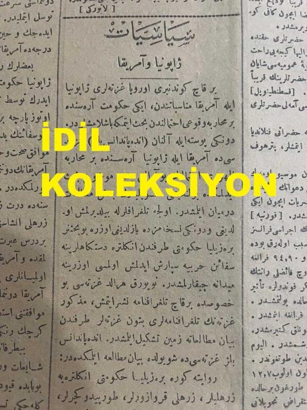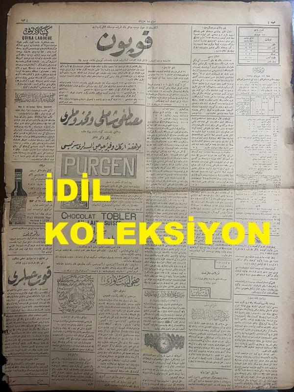 Osmanlıca Sabah Gazetesi, Orijinal dönem basım - 1 Temmuz 1908 - Sayı: 6740 - Hicri 2 Cemaziyelahire 1326 - Rumi 18 Haziran 1324 - 1 Temmuz efrencî 1908 - Tevcihat Kayıtları - Japonya Ve Amerika Arasında Savaş İhtimali - İtalya'da Tahsisat-ı Askeriye - Purgen Müessir Müshil - Tobler Çikolata Reklamı adlı eser, Kitap > Süreli Yayınlar > Gazeteler > Türkiye > Genel kategorisinde İkinci El olarak satıştadır.