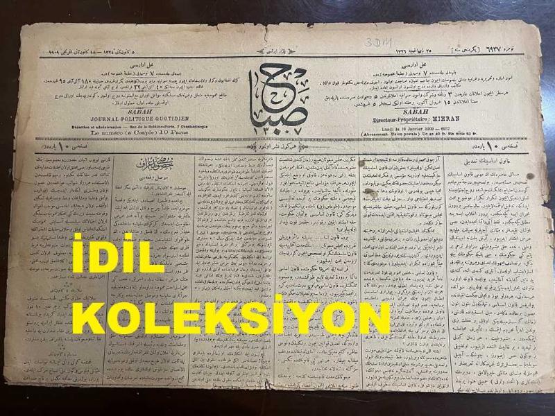 Osmanlıca Sabah Gazetesi, Orijinal dönem basım - 18 Ocak 1908 - Sayı: 6937 - Hicri 25 Zillhicce 1326 - Rumi 5 Kanun-i sani 1324 - 18 Kanun-i sani efrencî 1909 - Kanun-ı Esasinin Tadili - Girit'in Yunanistan Tarafından İlhak Edileceği Söylentileri Üzerine Sultan Ahmet Meydanı'nda Talebeler Tarafından Yapılan Protestolar - Bulgaristan Ahvali - İtalya'da Zelzele-i Müthişe adlı eser, Kitap > Süreli Yayınlar > Gazeteler > Türkiye > Genel kategorisinde İkinci El olarak satıştadır.