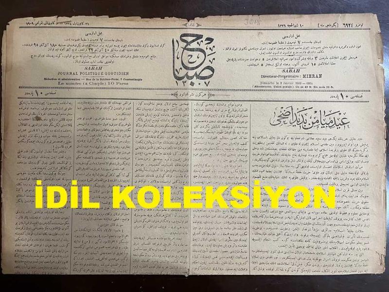 Osmanlıca Sabah Gazetesi, Orijinal dönem basım - 3 Ocak 1909 - Sayı: 6924 - Hicri 10 Zillhicce 1326 - Rumi 21 Kanun-i evvel 1324 - 3 Kanun-i sani efrencî 1909 - Iyd-i Meyamin-i Bedid-i Edha - Muayede-i Hümayun - Halit Ziya Uşaklıgil'in Nesl-i Ahir Roman Tefrikası - İtalya'da Zelzele-i Müthişe adlı eser, Kitap > Süreli Yayınlar > Gazeteler > Türkiye > Genel kategorisinde İkinci El olarak satıştadır.